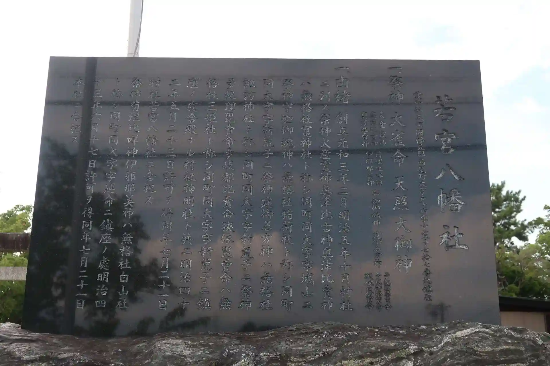 由緒書きによれば、祭神は、大雀命(オオササギノミコト=仁徳天皇)と天照大神(アマテラスオオミカミ)。あと十柱の神が合祀されています。
