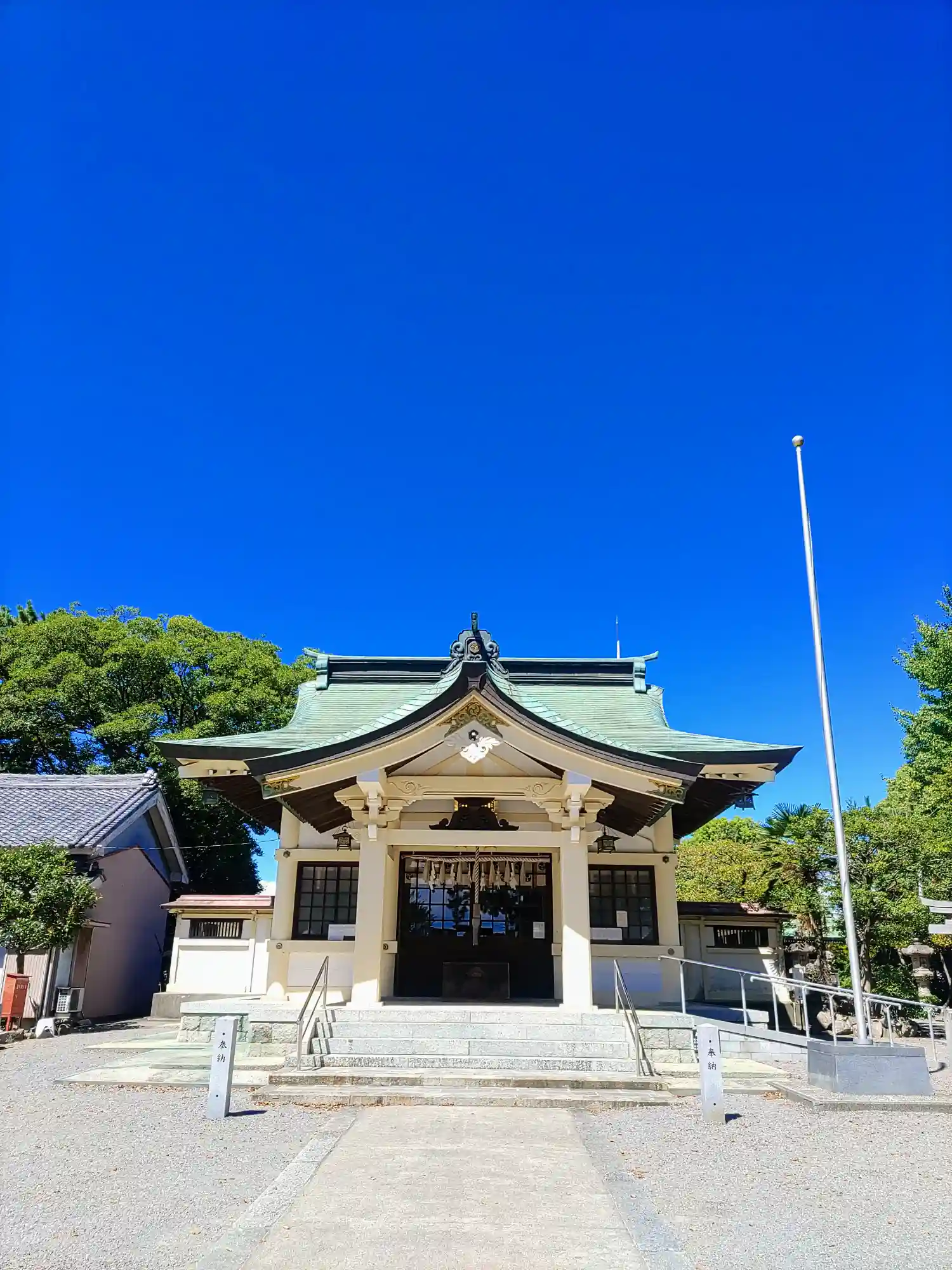 境内には特になにもありませんが、白い社殿が綺麗でした。