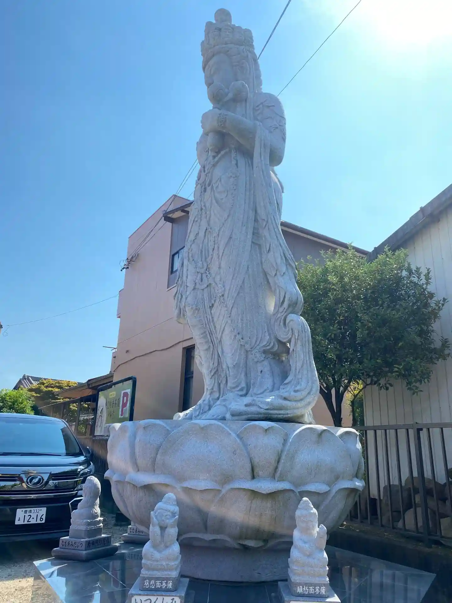 駐車場や境内にいくつか新しい仏像があります🎵