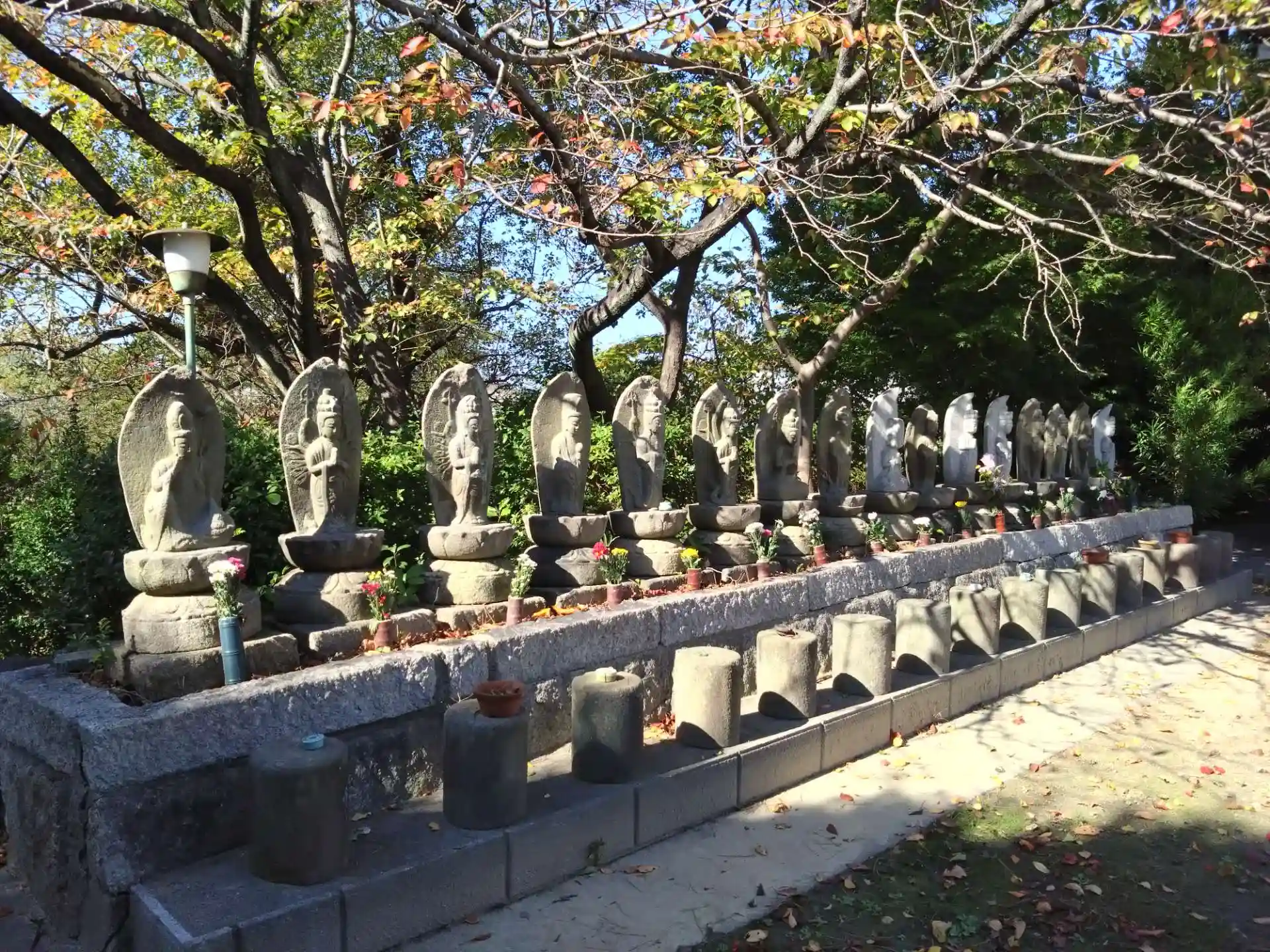本堂前にたくさんの石仏が並んでいます。
