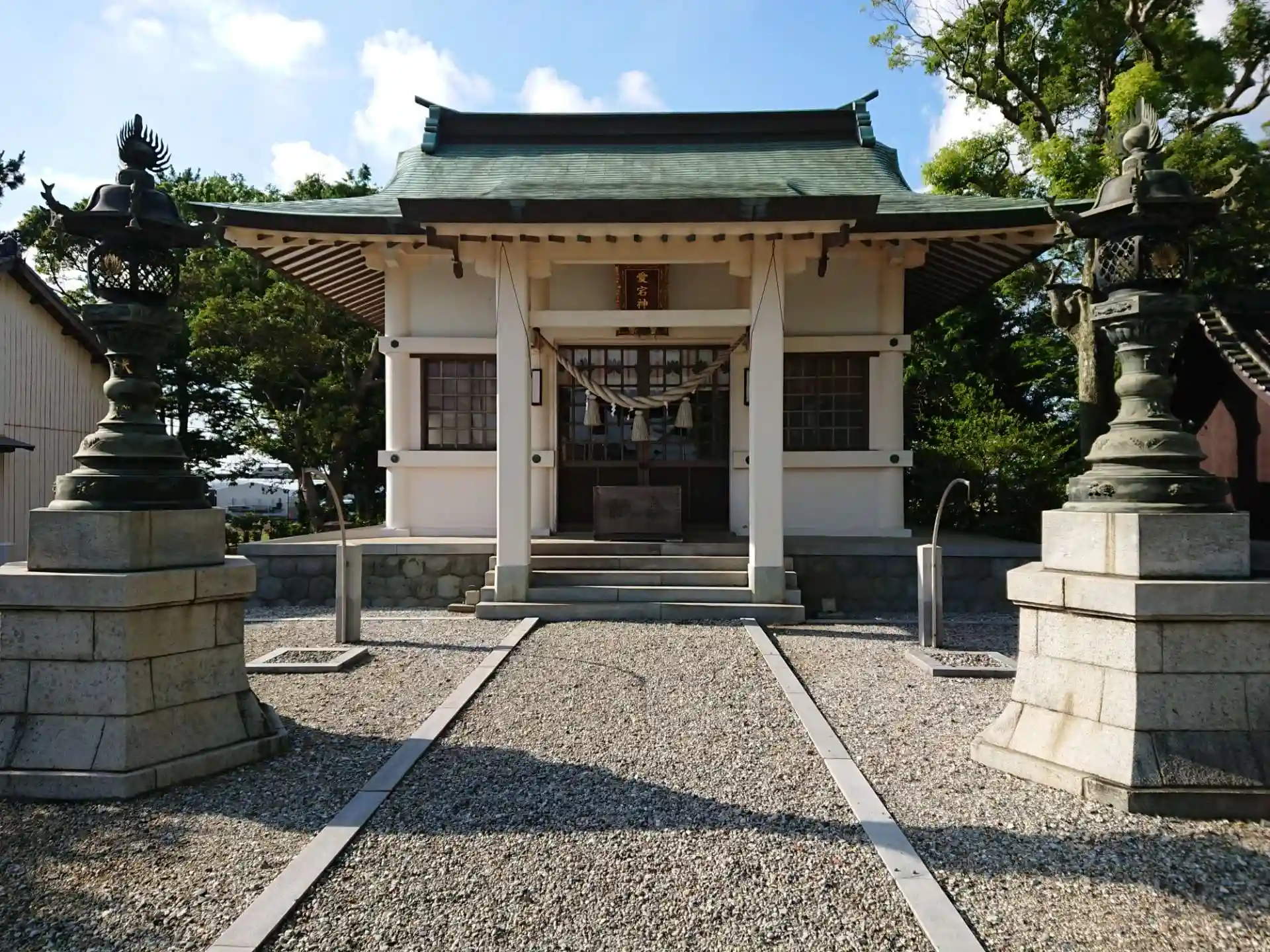 白い社殿がとても綺麗でした。