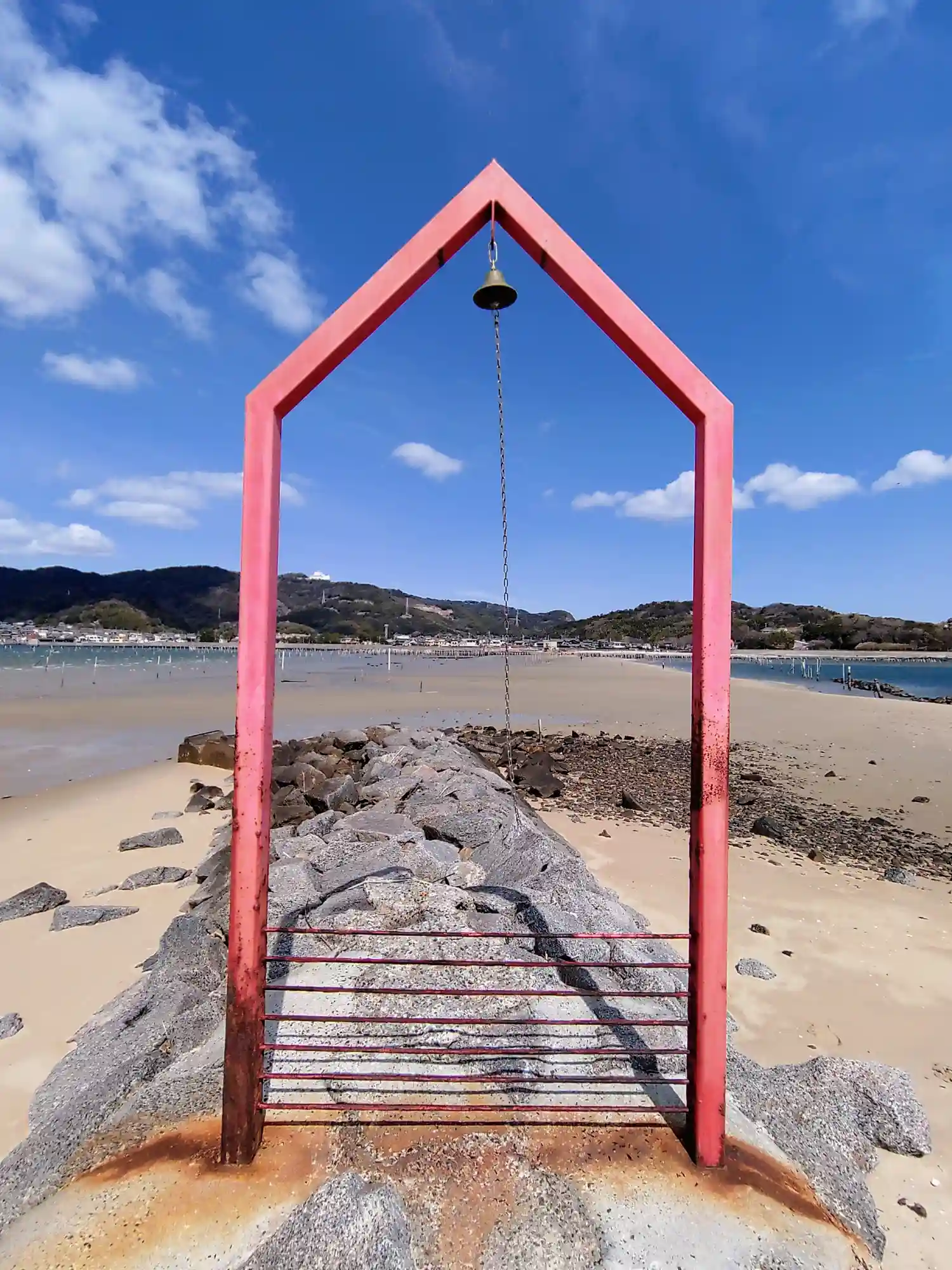 漁港の真前にあり赤い鳥居が目立ちます。