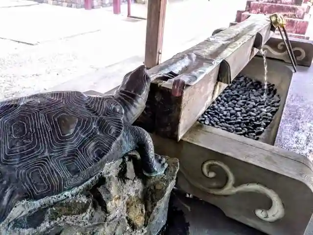 水盤に近づくとセンサーが働き亀の口から噴き出ます。