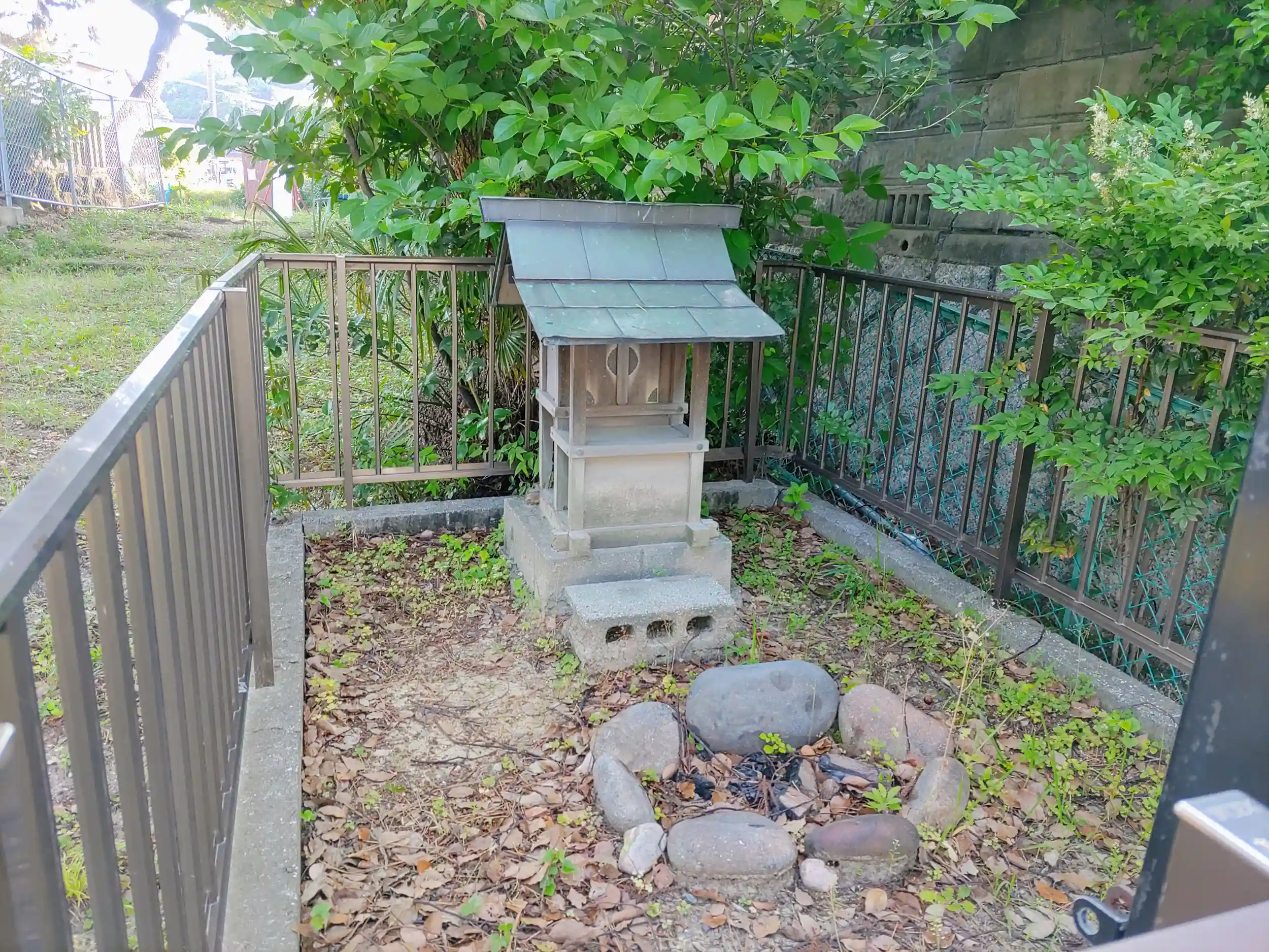 貝塚の上に建っています。木の大きさから察するに歴史はありそう。