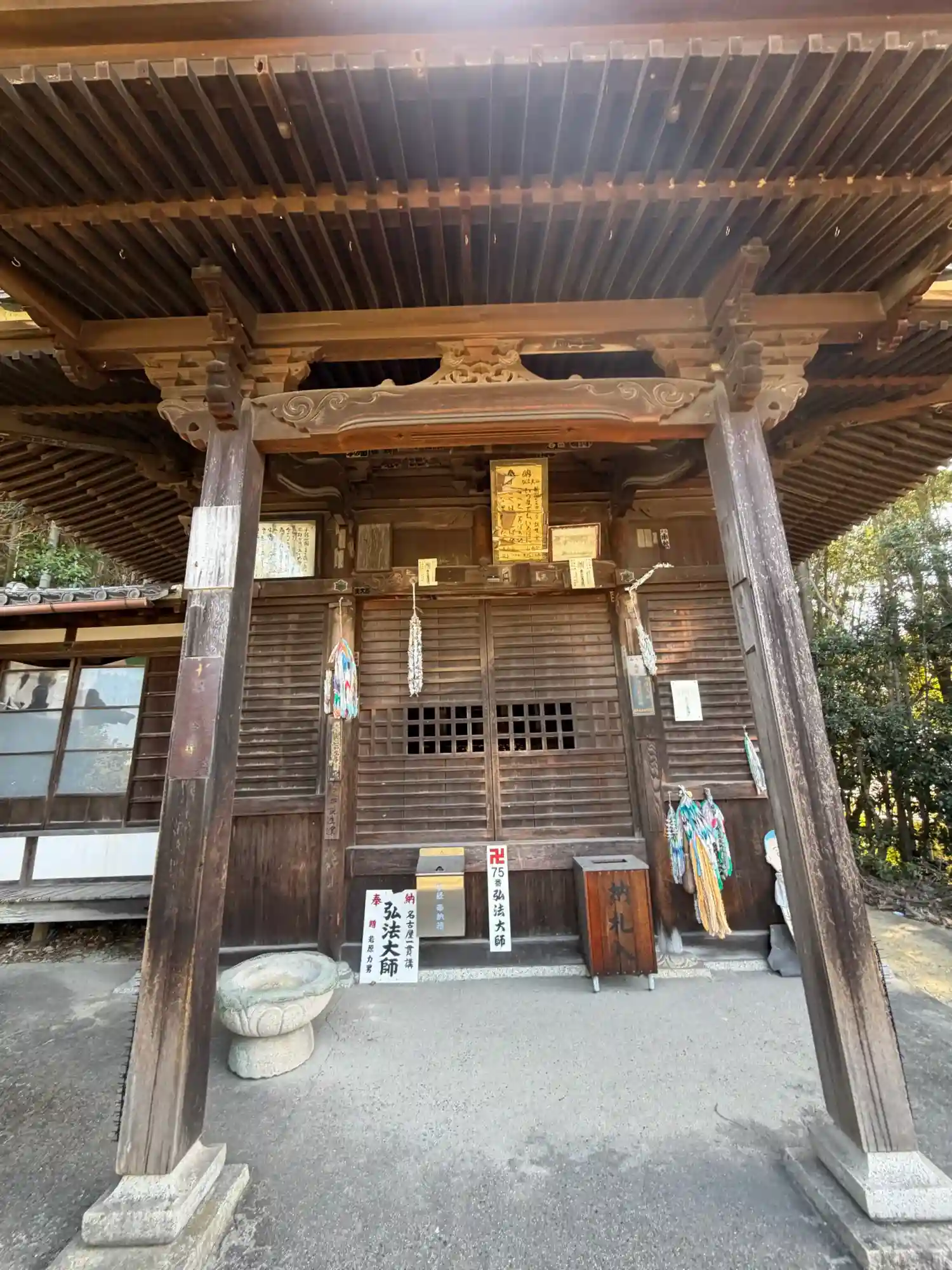 弘法大師生誕の地、本四国霊場善通寺の札番が第75番と同じである事により、誕生堂と名付けられた。
