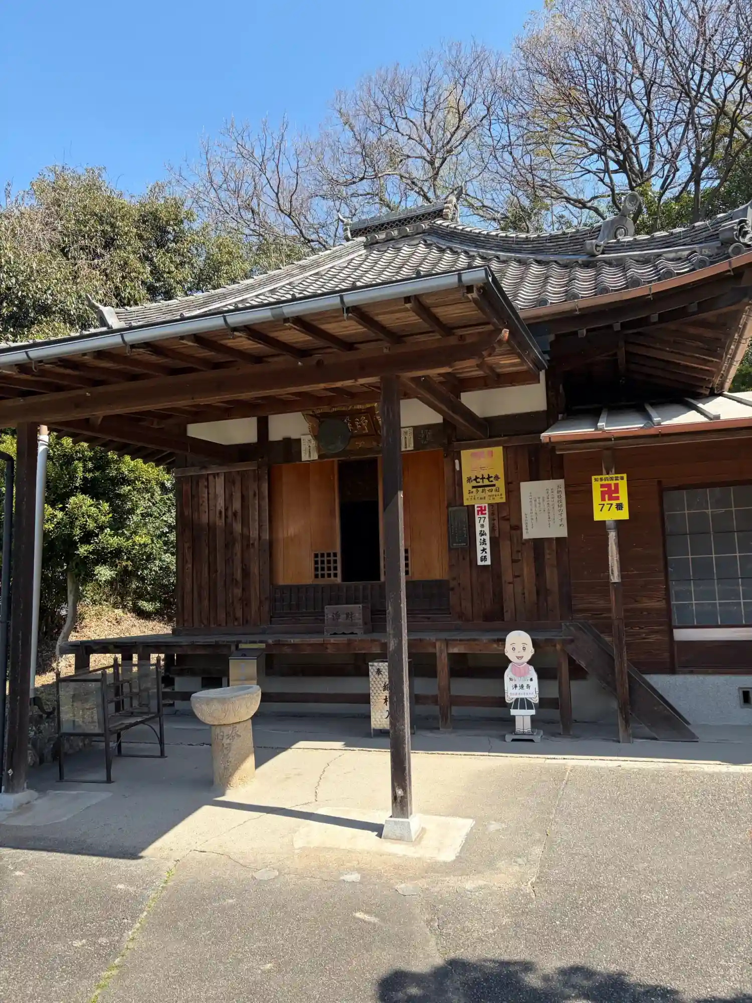 第73番札所からこの第77番札所までの5ヶ寺が纏まって在りますので一纏めで廻ります。広い駐車場もあります。