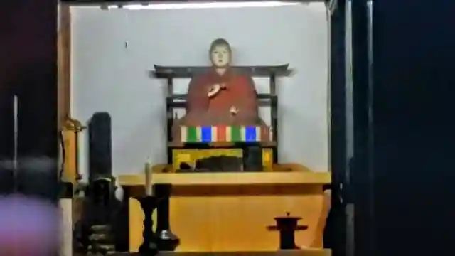 本堂正面の小さな窓から中を見ると、正面に明かりが付き弘法さんを見ることができます。