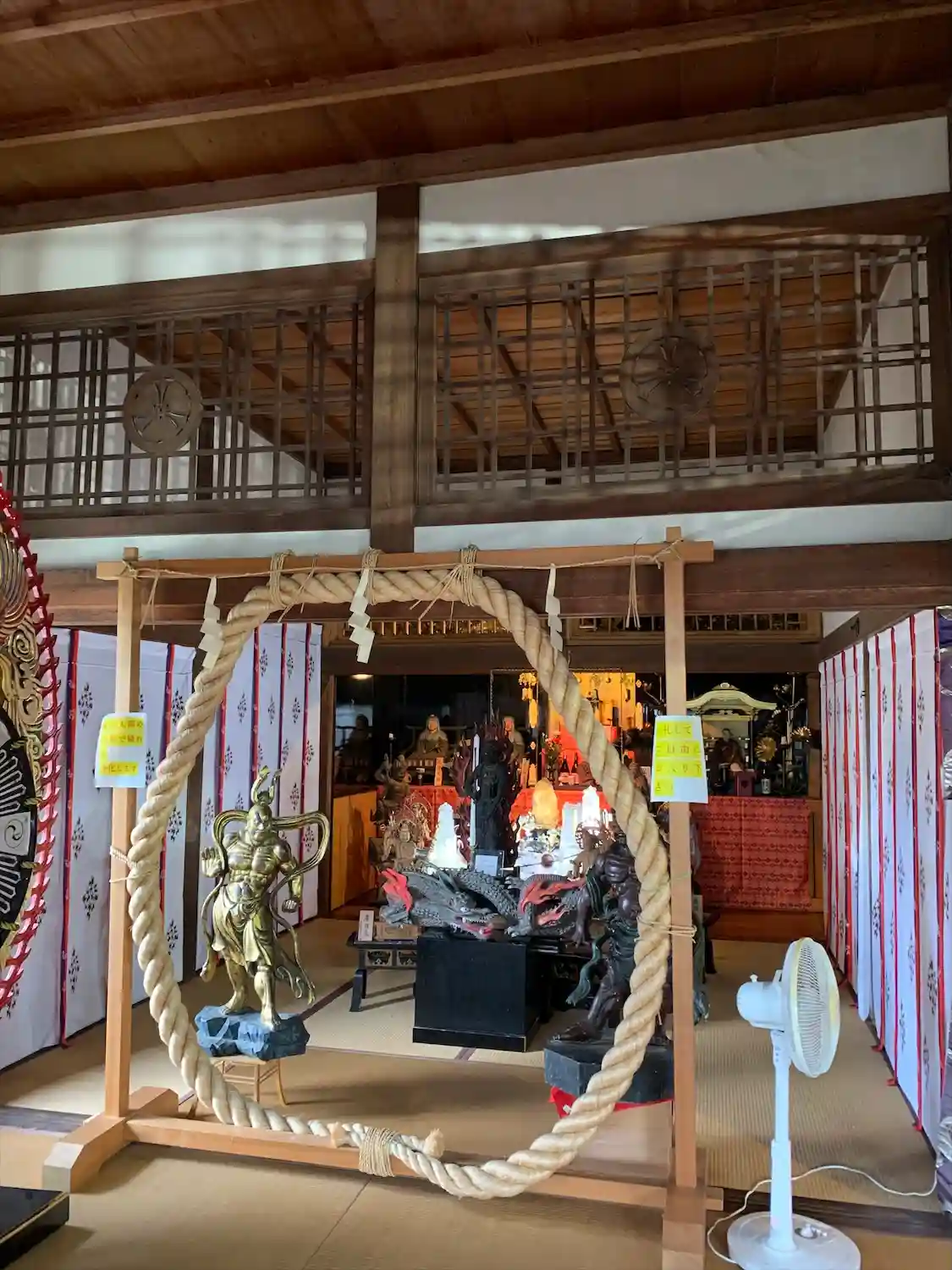 本堂の中、熊手がありました。