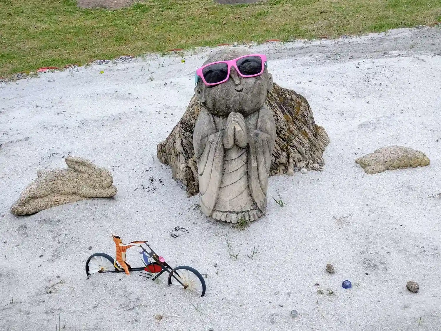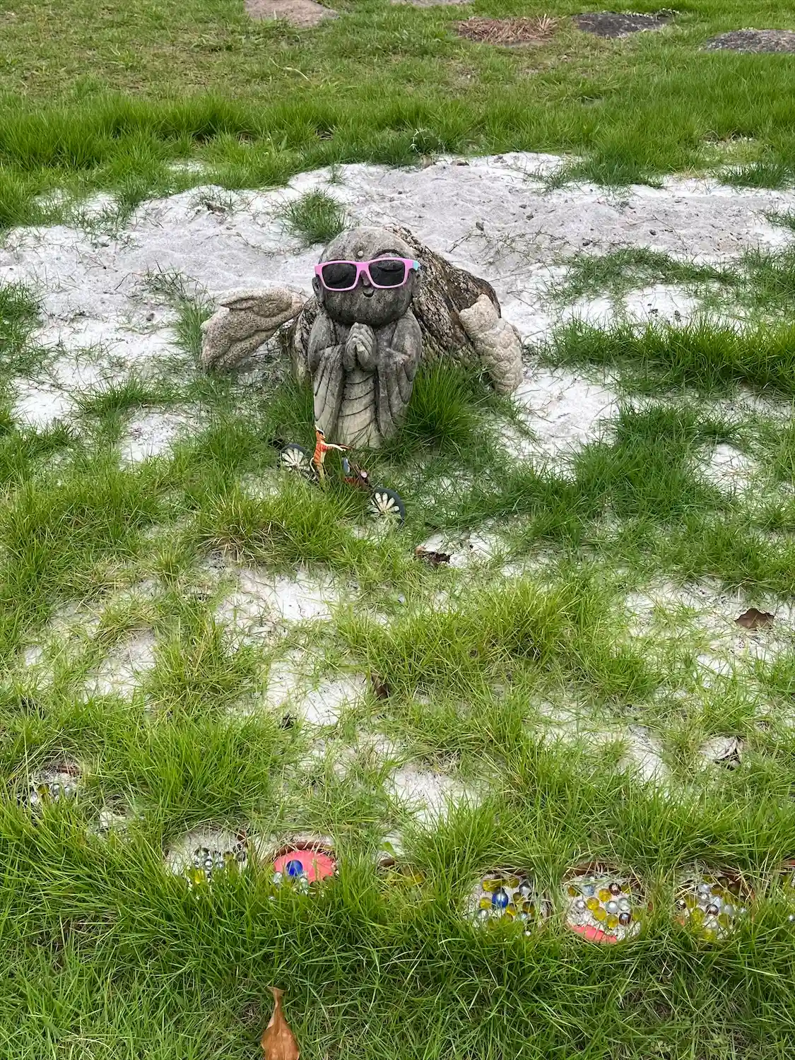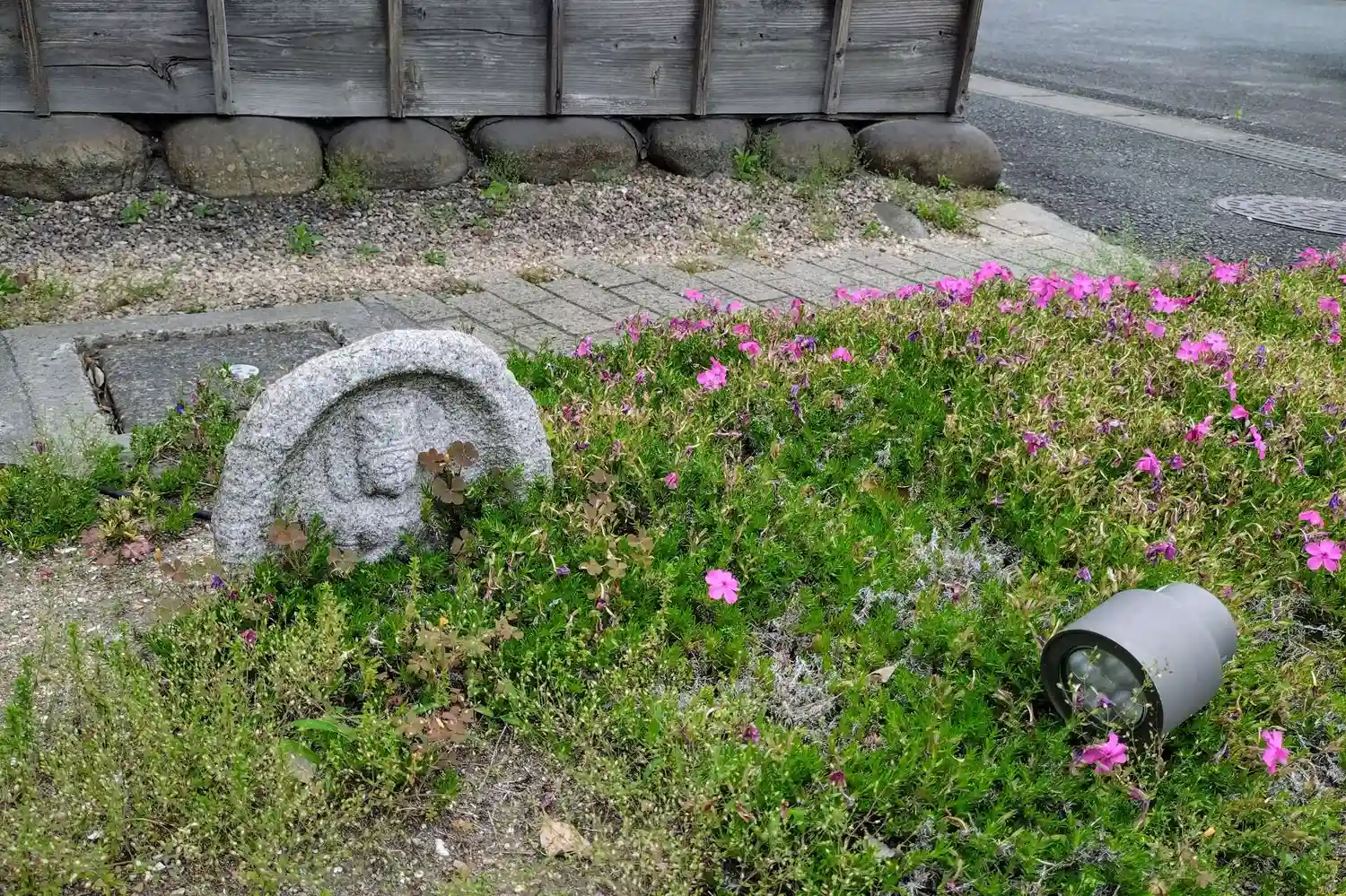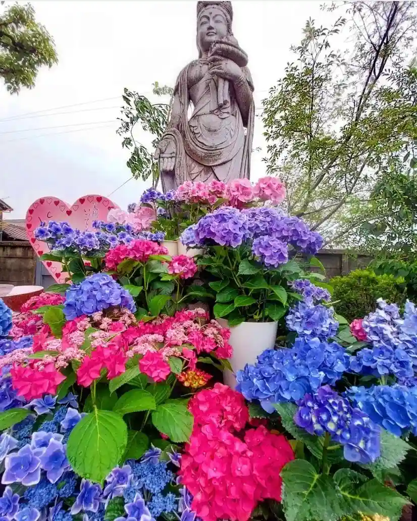 ほほえみ観音の周りに紫陽花を置きました♪
