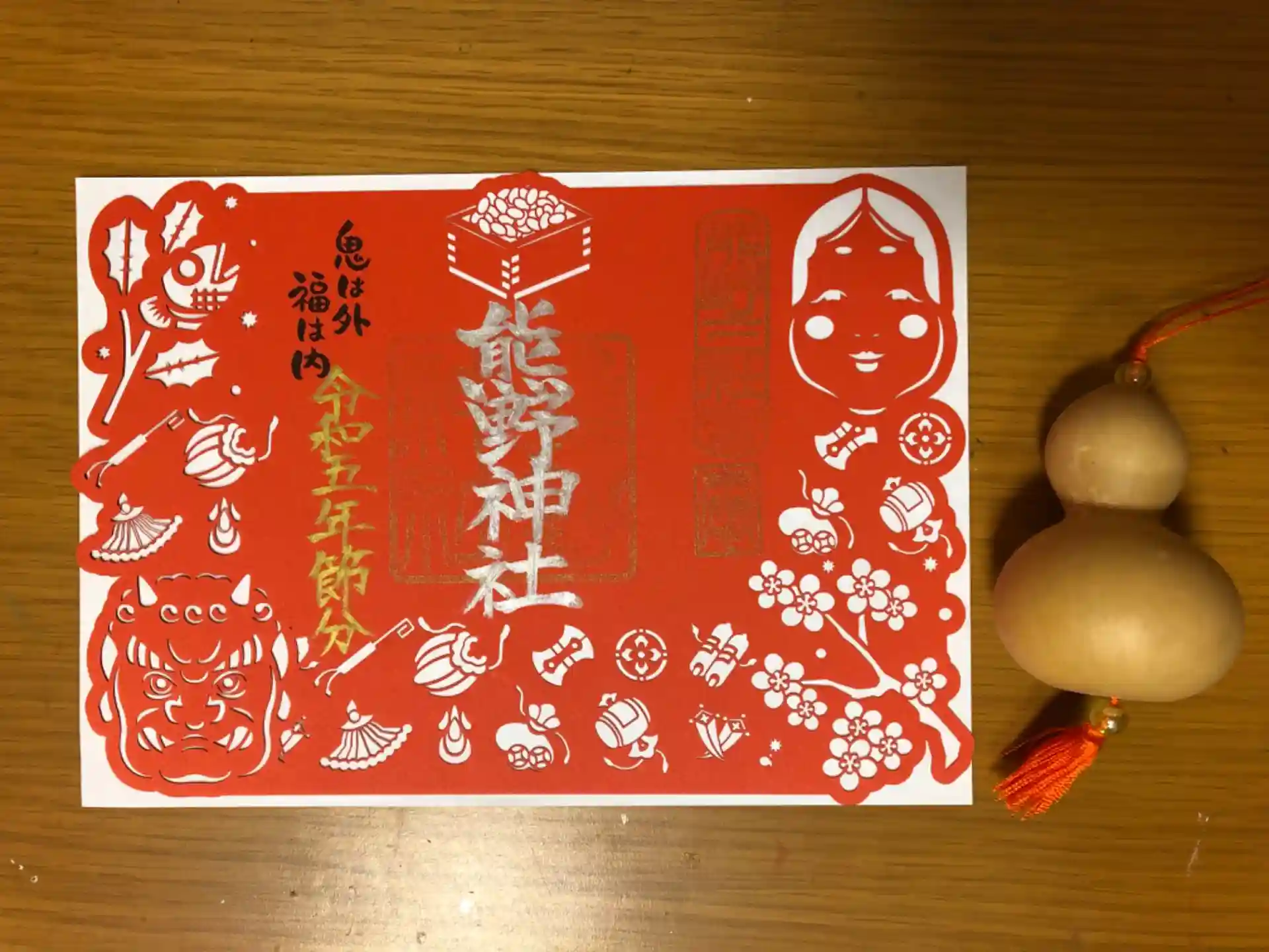 ④節分切り絵御朱印(見開き、社頭授与に限り、先着で千なり瓢箪付き)
