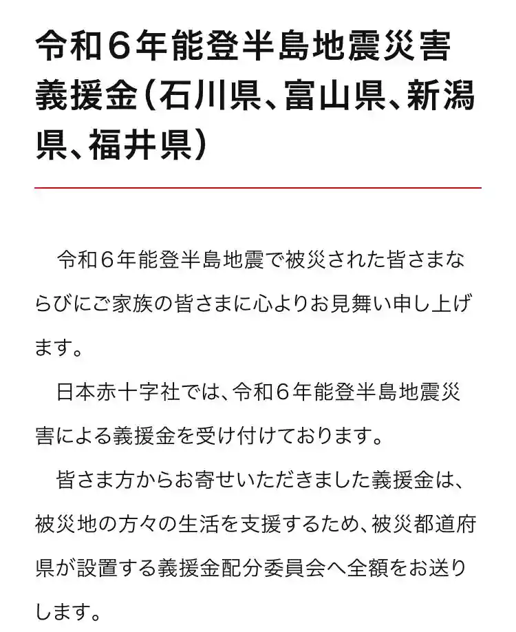 初穂料500円全額を日本赤十字社の「令和6年能登半島地震災害義援金」に寄付させていただきます。