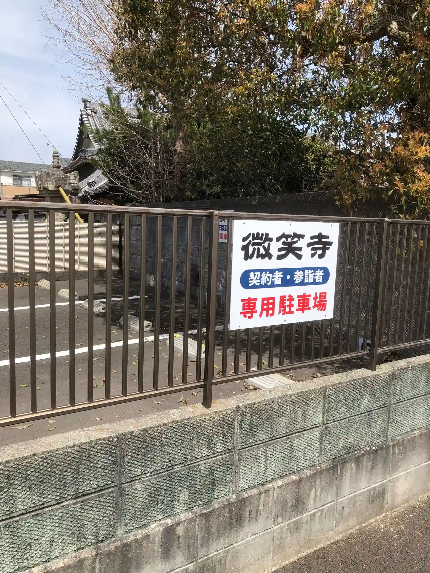「微笑寺」の名を掲げた駐車場は付近に複数あり、むしろ看板のお陰でお寺の存在に気づけた次第です。