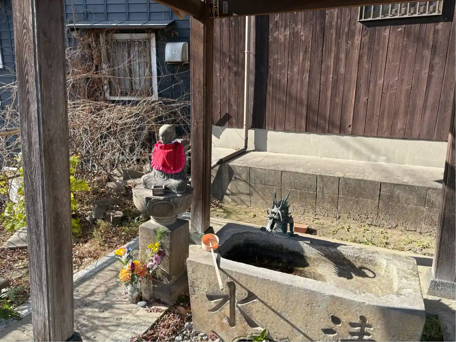 手水舎と山門