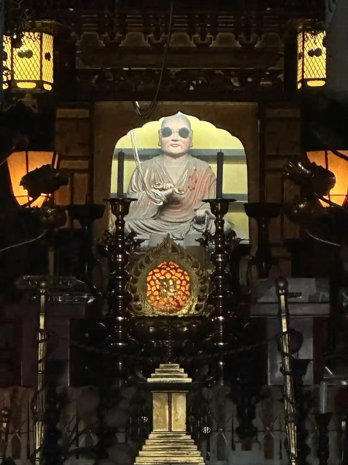 弘法様がメガネ(サングラス?)をかけています。