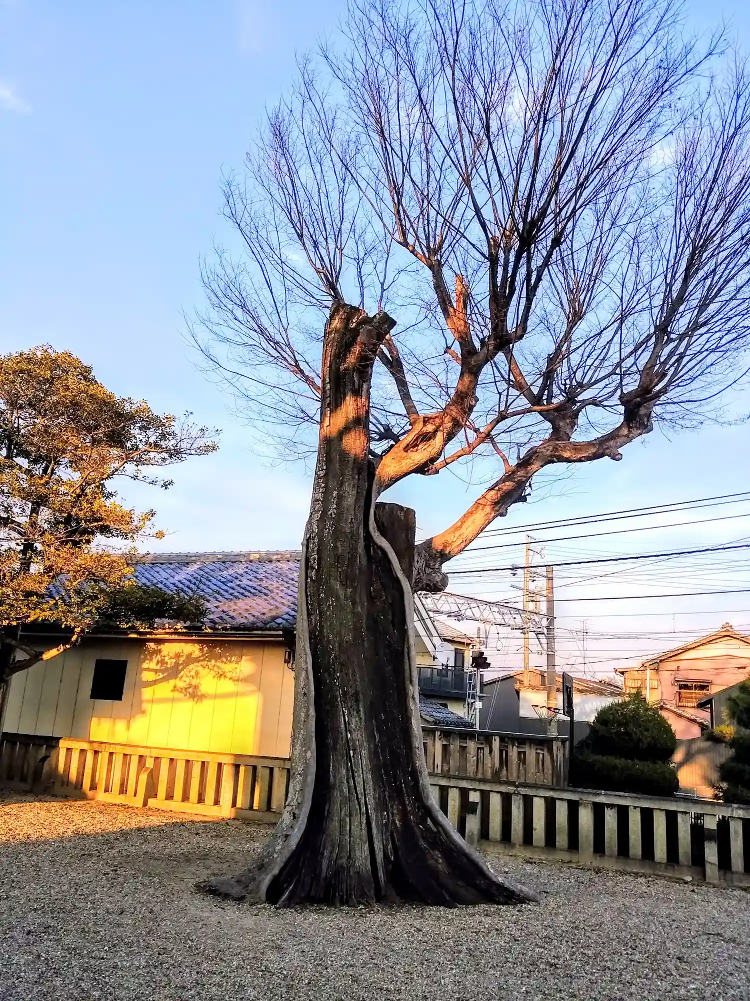 境内のすぐ横を電車が走る。