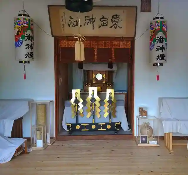拝殿に、打ち上げ花火の玉と手筒花火の筒が供えてありました。