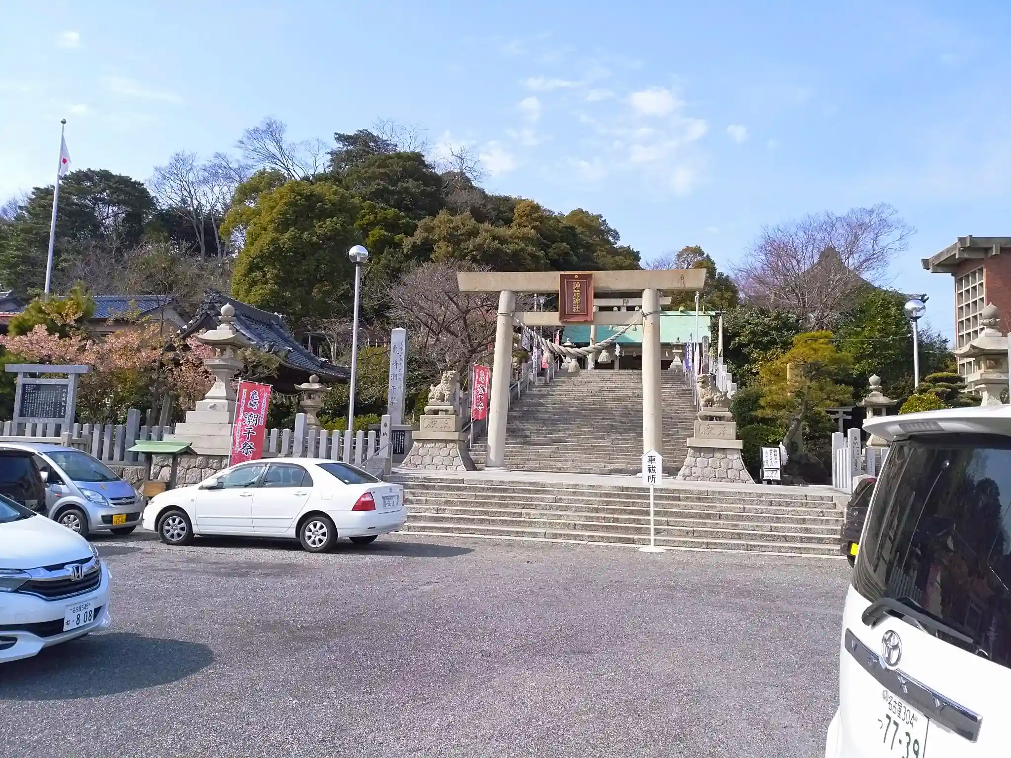 鳥居の前が駐車場。ただしみんながみんな神社の駐車場とは限らないので注意。