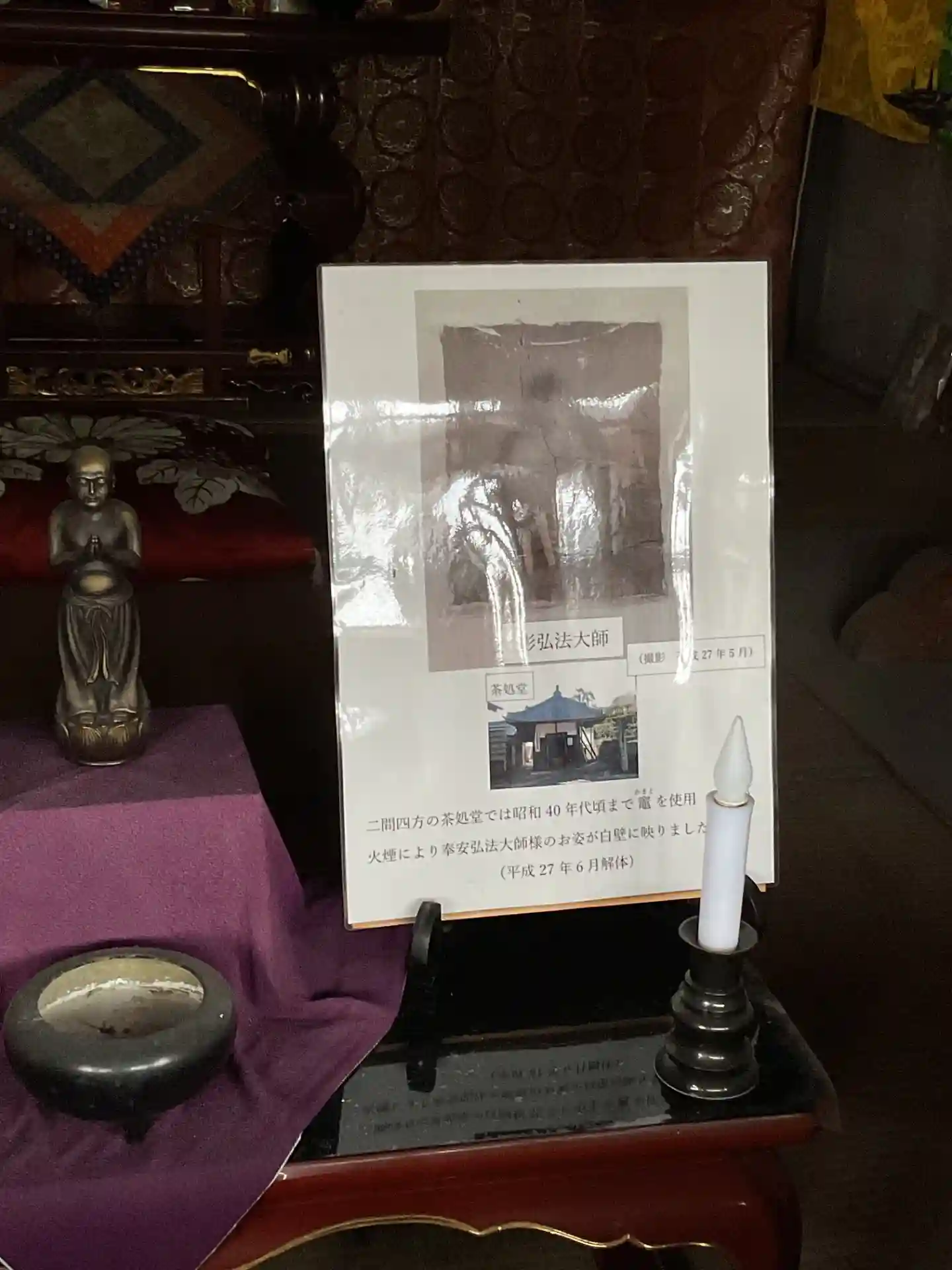 右手の写真は「影弘法」さんです。壁に弘法さんの姿が現れたそうな。