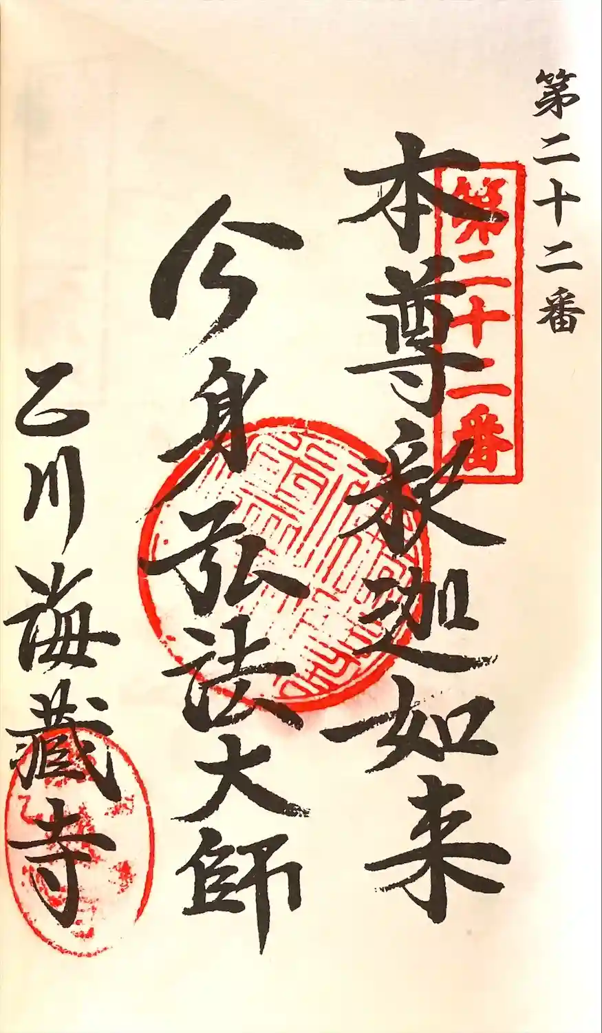 「四国直伝八十八」第22番札所です。