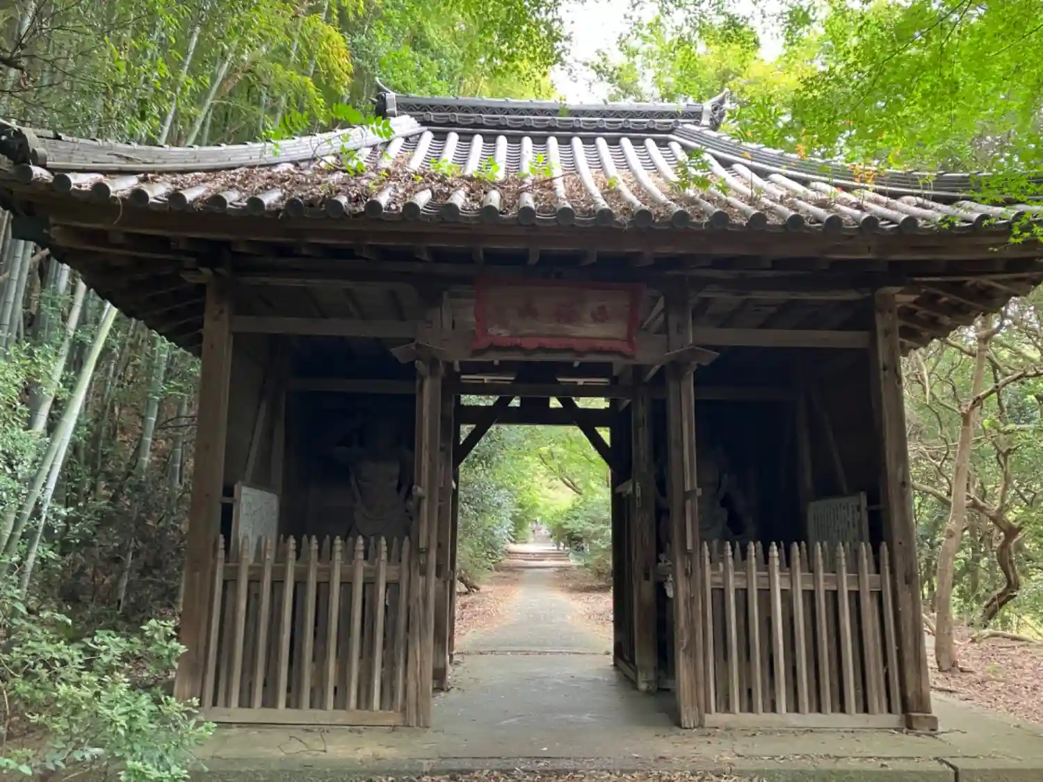 鬱蒼とした森の中の長い参道を進むと大きな山門があり中には大き…