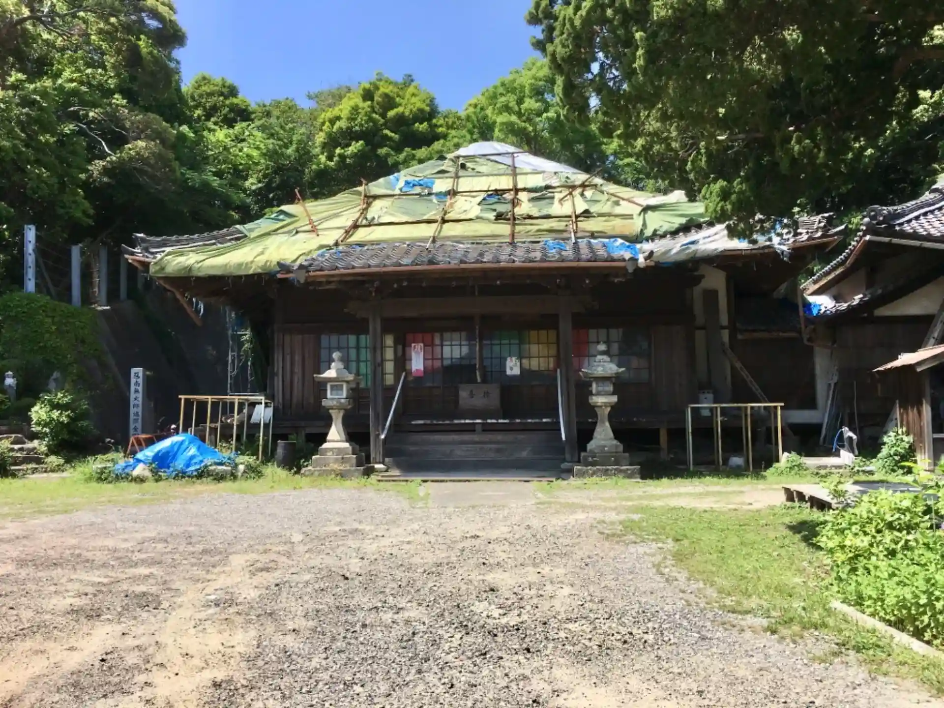 本堂の屋根が大変な事になっていました…汗