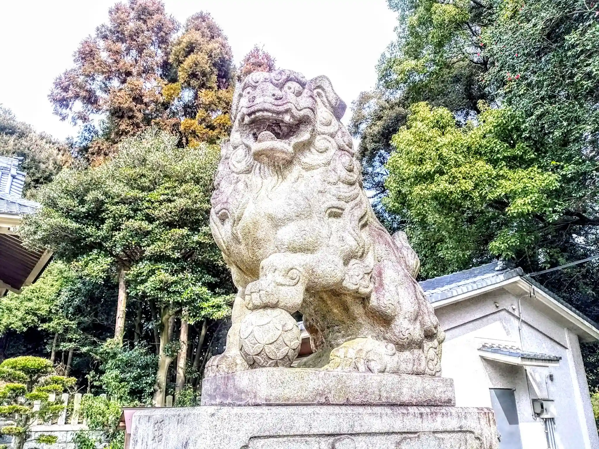 老朽化に伴い建て替えたばっかの神社さん。池を売却したお金で建て替えの費用に充てたそうな。