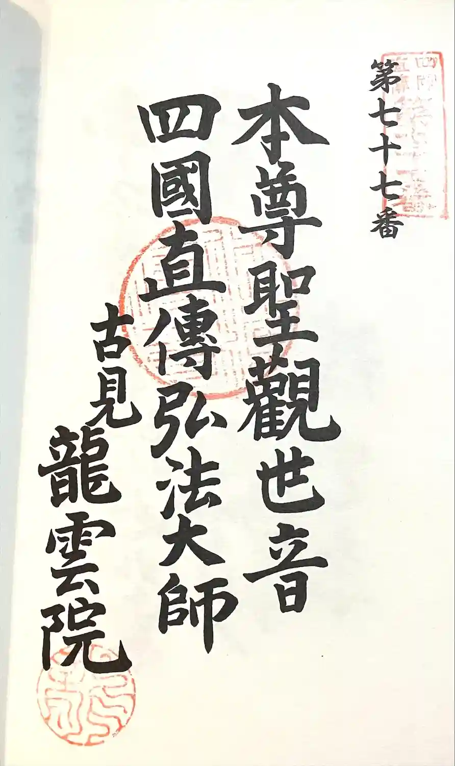 | 四国直傳弘法大師尾張八十八ヶ所霊場 第77番 | 仏さま:聖観世音菩薩 |