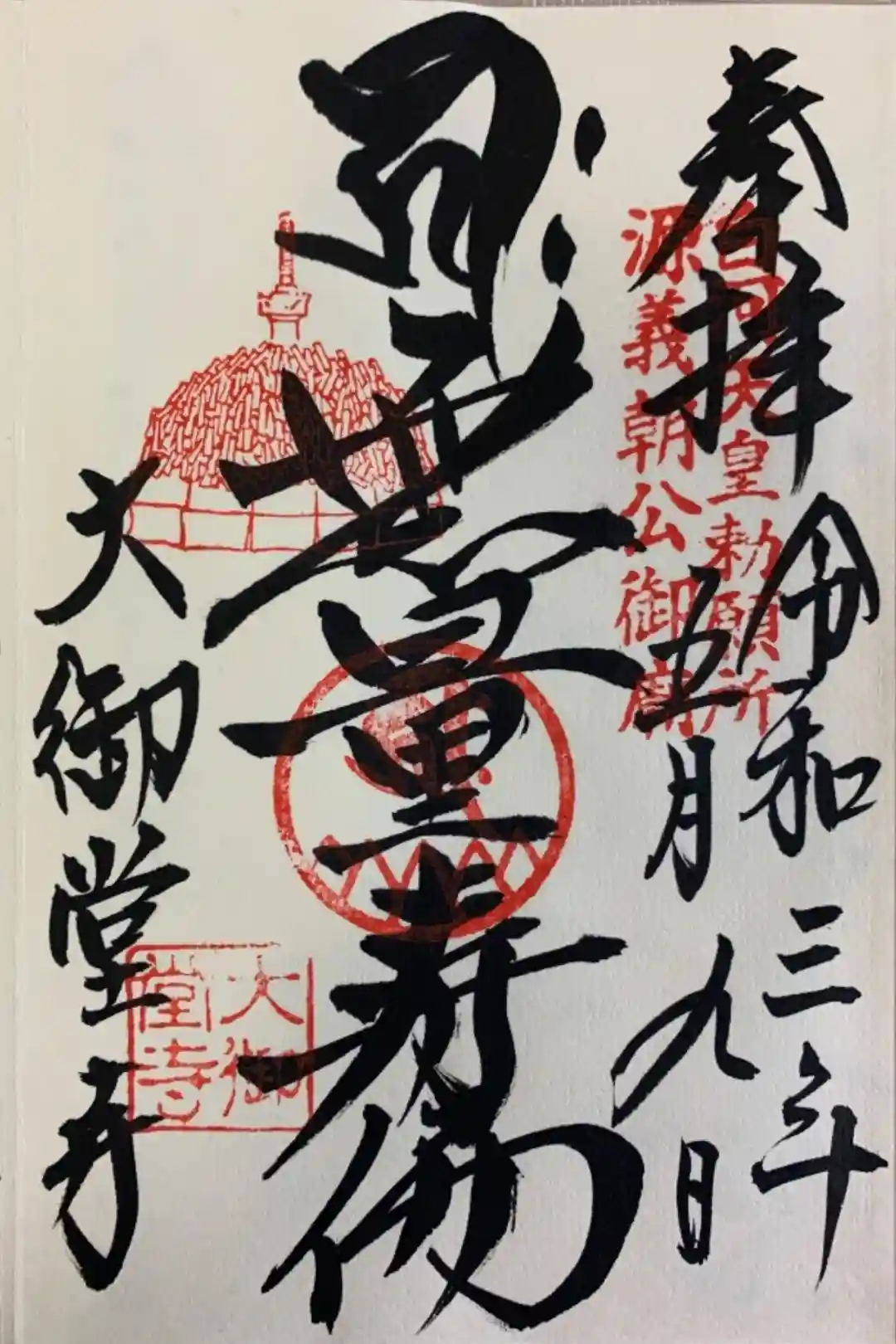 大御堂寺阿弥陀三尊と直書き御朱印