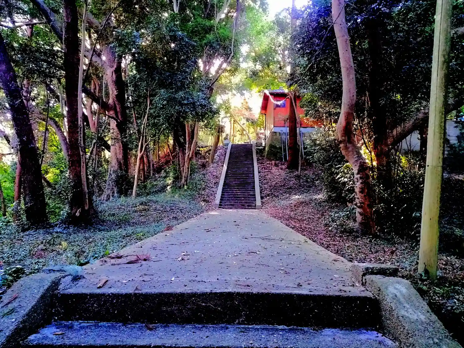 階段を登った先に社務所と神社がありますが、トイレは見…
