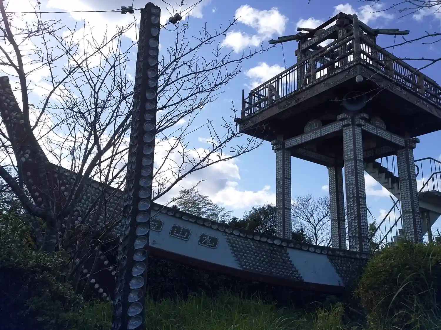 貝殻はり付けた鳥居