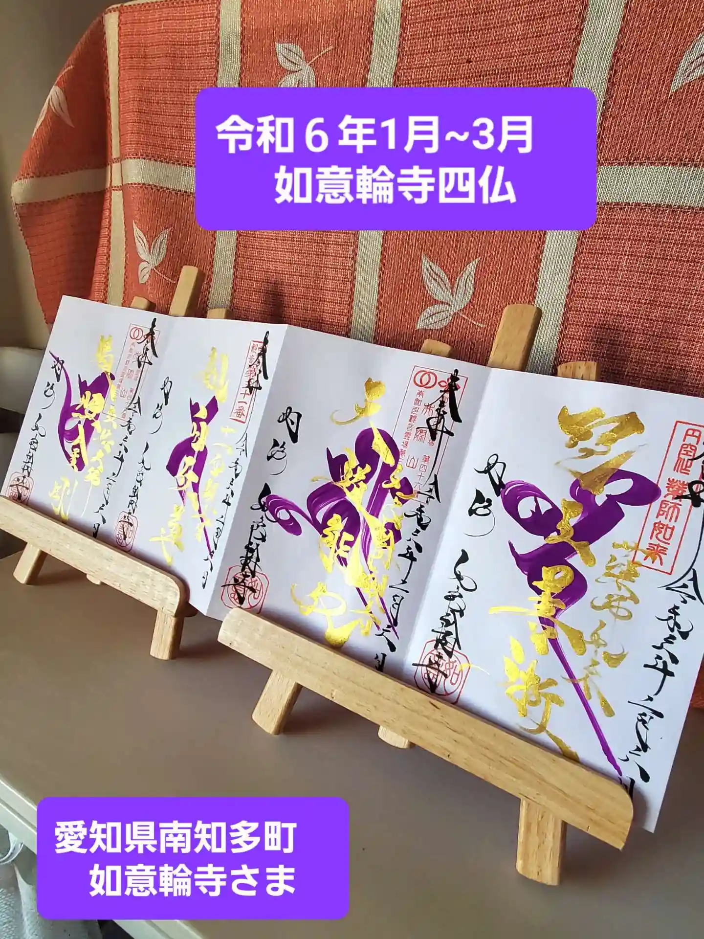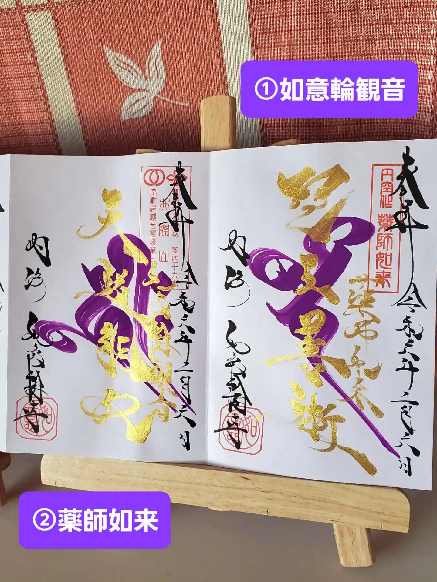 実は如意輪寺さんで購入する御朱印帳は2冊目です、今回は見開きサイズの御朱印帳で三頁にわたって御朱印がすでに書かれています。