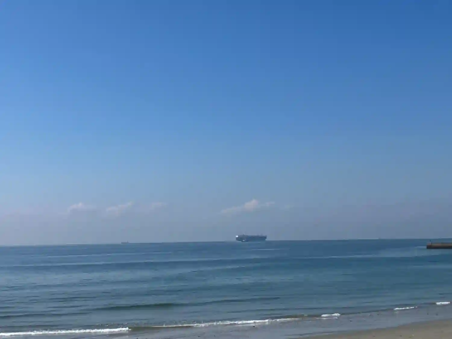 遠くに船が見えます。