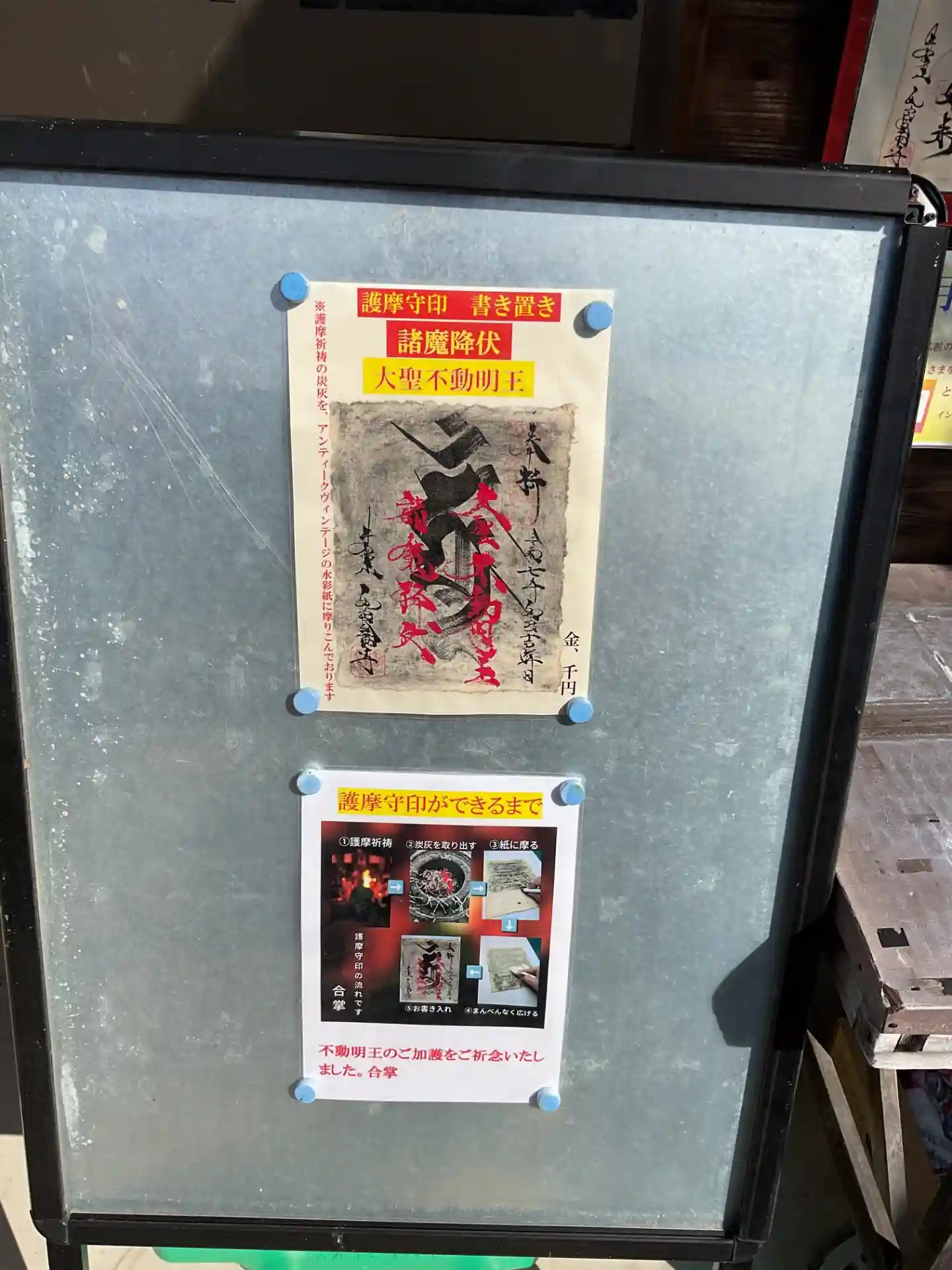 お札と護摩木の案内