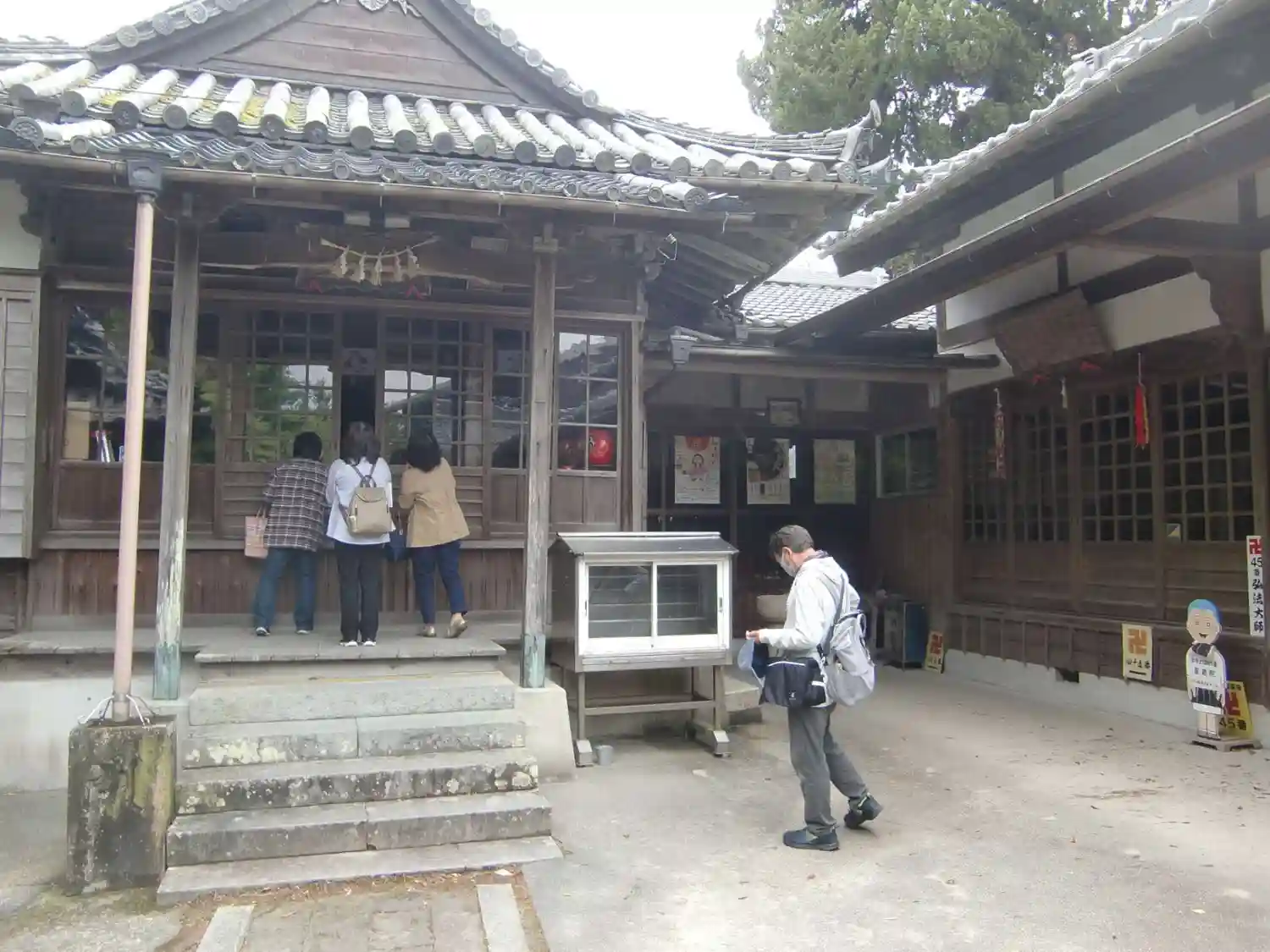 (本堂左手前の屋根は金比羅堂拝殿、右端の緑色は納経所の暖簾)