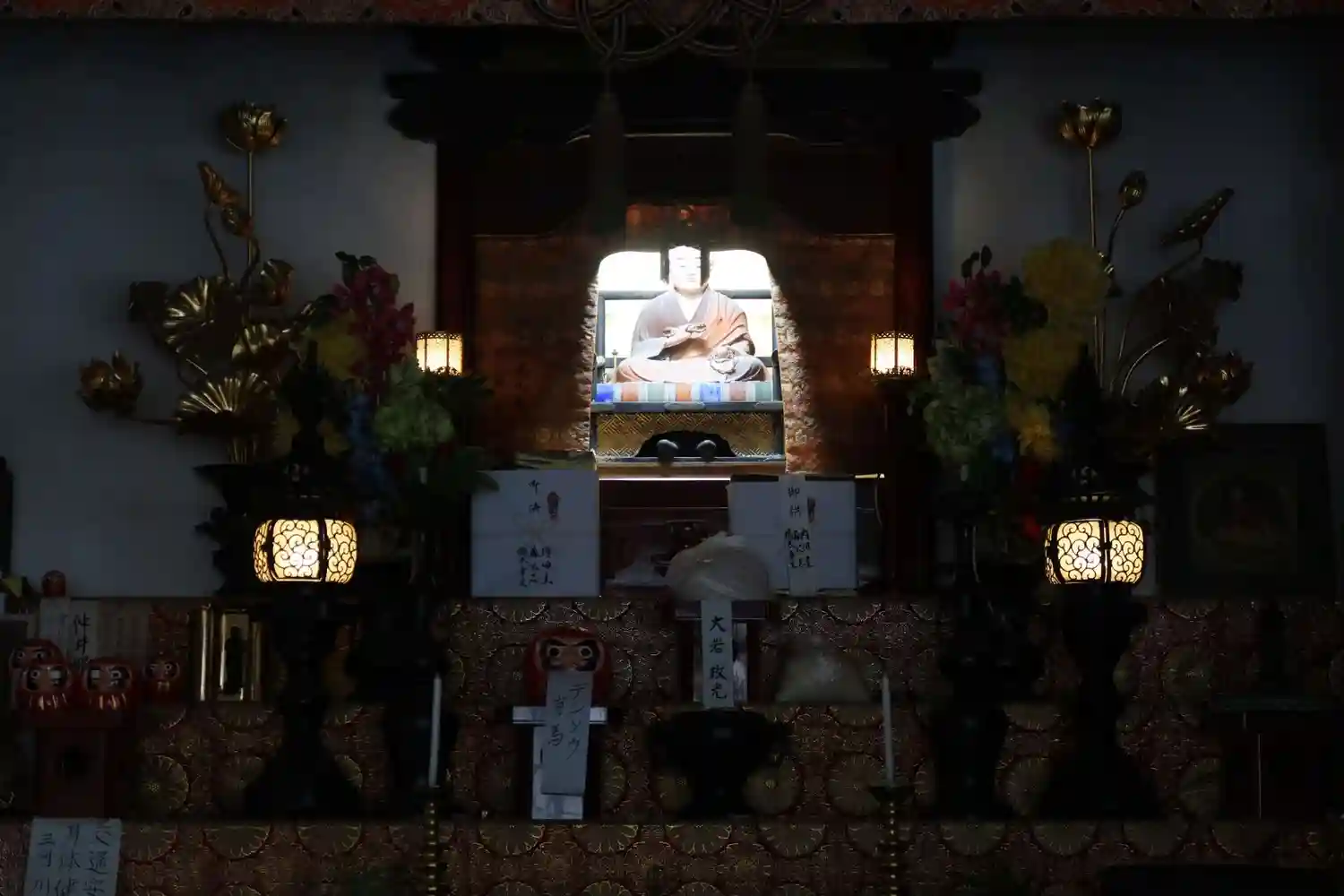ダルマ大師(ダルマ弘法)と呼ばれているので須弥壇にダルマが祀られている