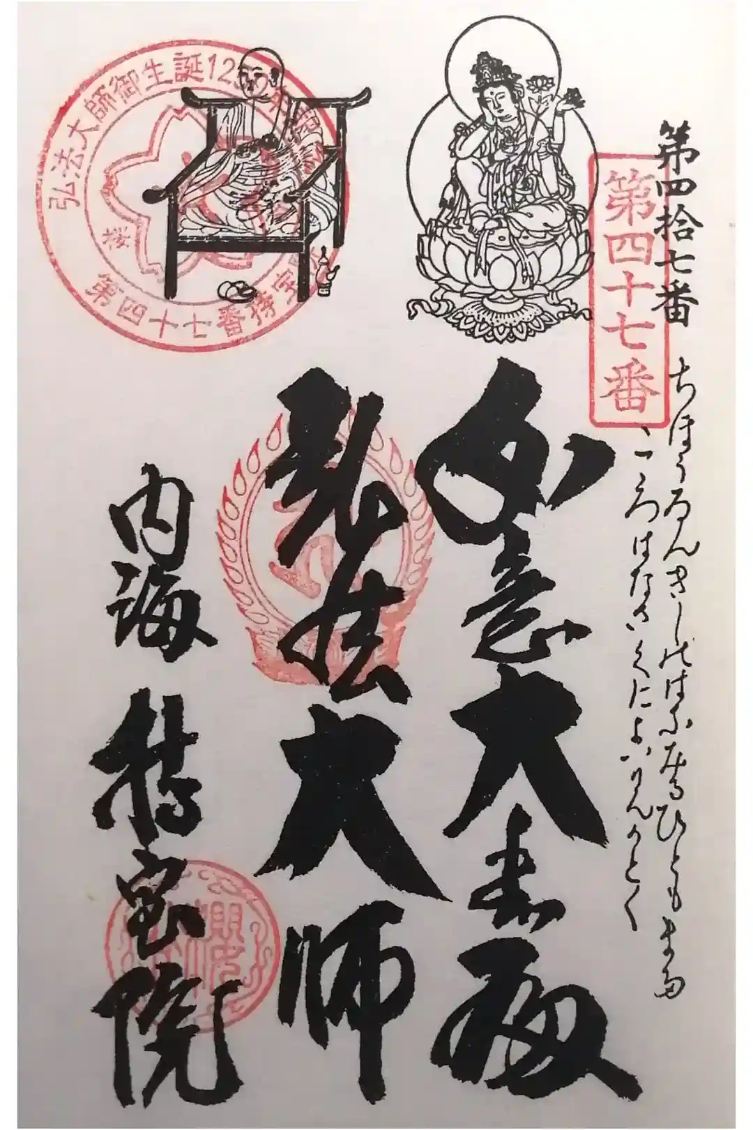 | 御朱印帳にお書き入れ | 本尊様(観音様 2) 寿老人様 弘法様 御詠歌 お不動様 | ||