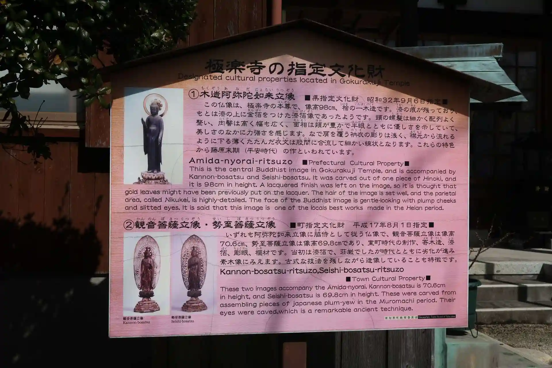 この本尊・阿弥陀如来立像は県指定文化財で、脇侍の観音菩薩立像と勢至菩薩立像は町指定文化財であり、一度拝してみたいと思っていましたので行く事にしました。