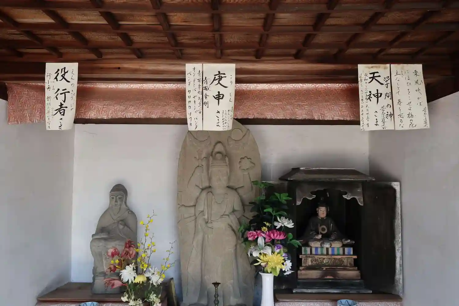 役行者、青面金剛(庚申)、天神(菅原道真)