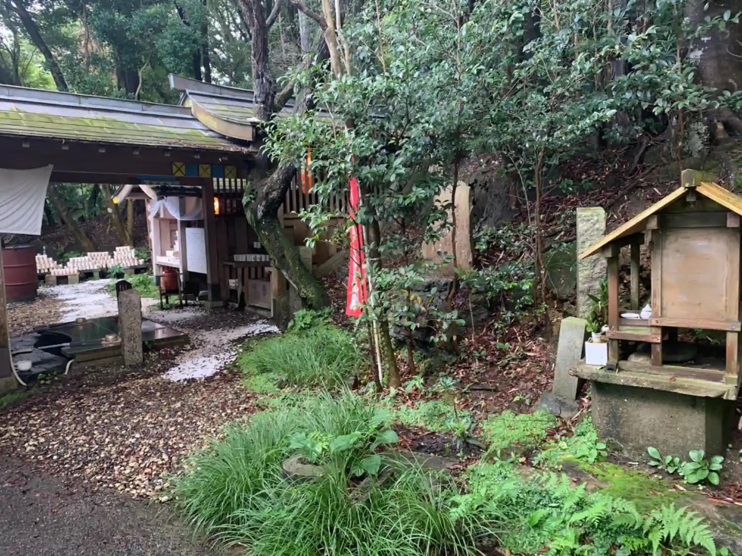 このテーブルの下から水が流れていました。私もコップを買って、願い事を書いて、水を半分入れて、供えてお参りしました。願い事はもちろんコロナの終息です。病に効くからね。