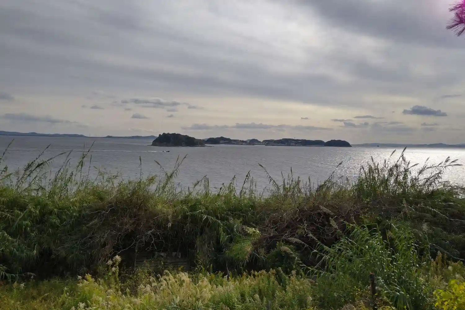 しょうがないので外周道路をずーっと歩いて帰ることにしました。島の北側は漁船がいっぱい係留されていました。漁業の島らしいです。
