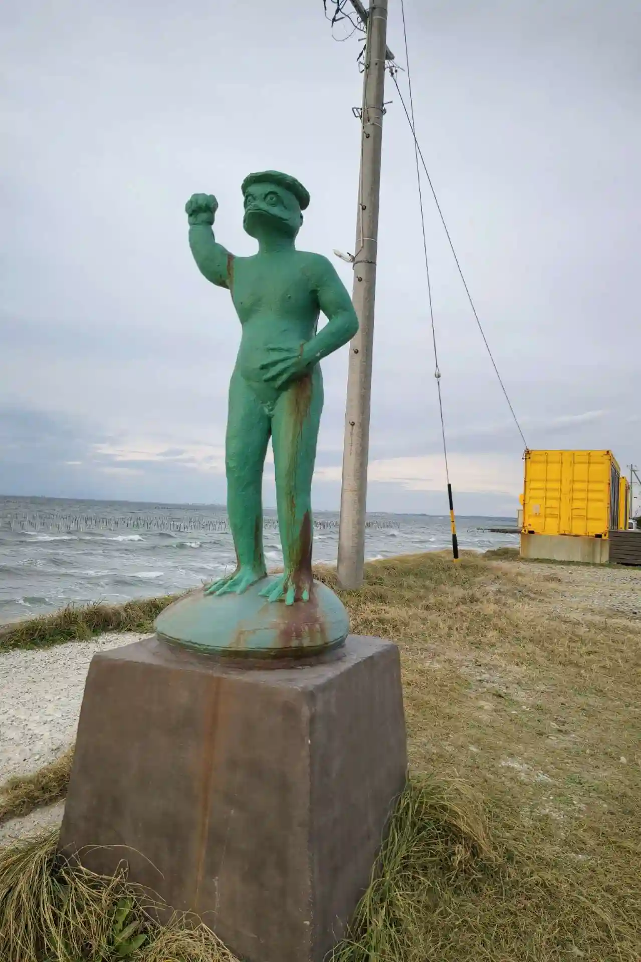 東港には逆の左手?を上げている「がっしー君」がいます。