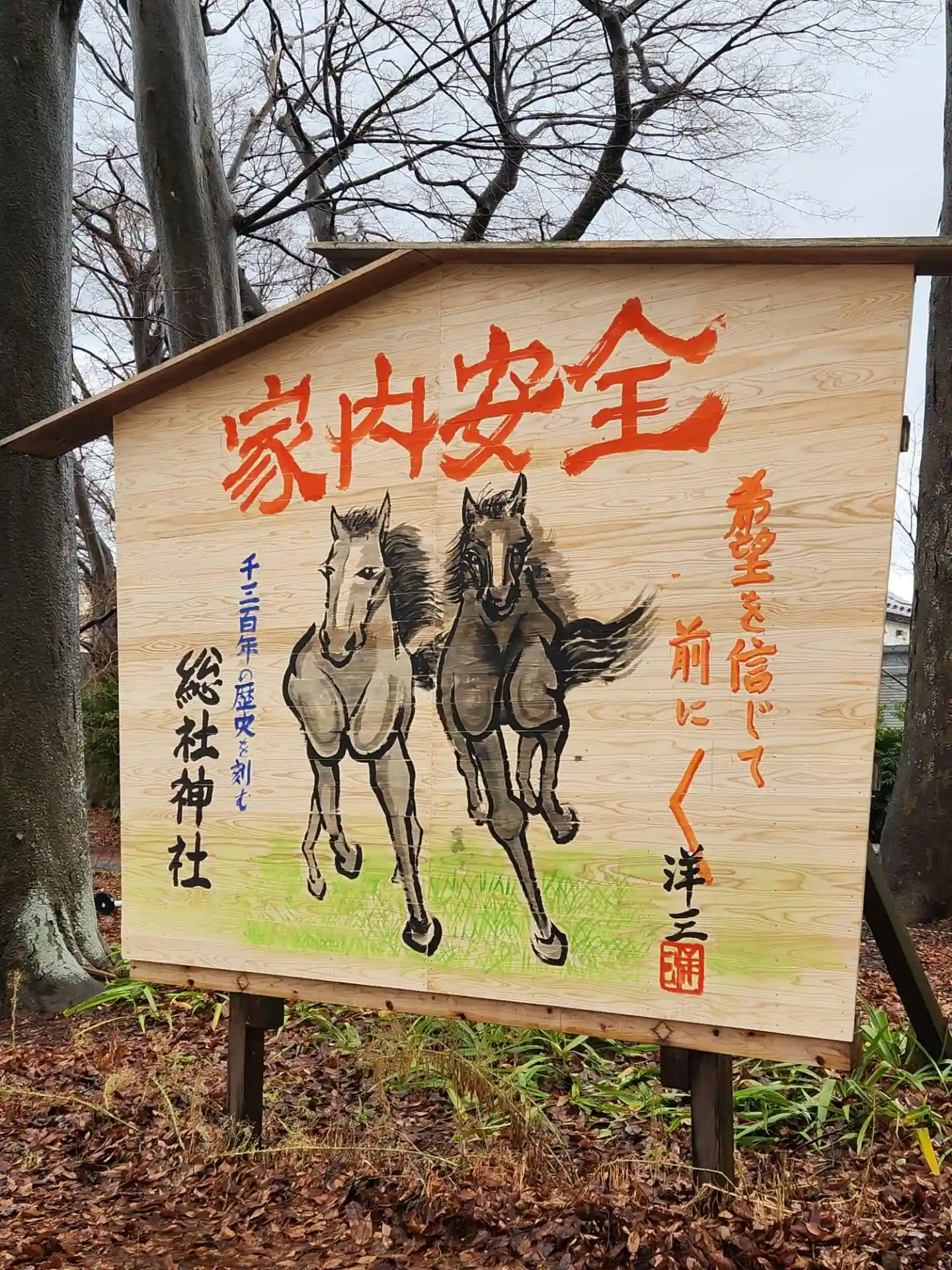 午後に参拝に伺ったところ、午前中に来年の午年の大きな絵馬を飾ったとのことで、タイミングよく拝観できました。