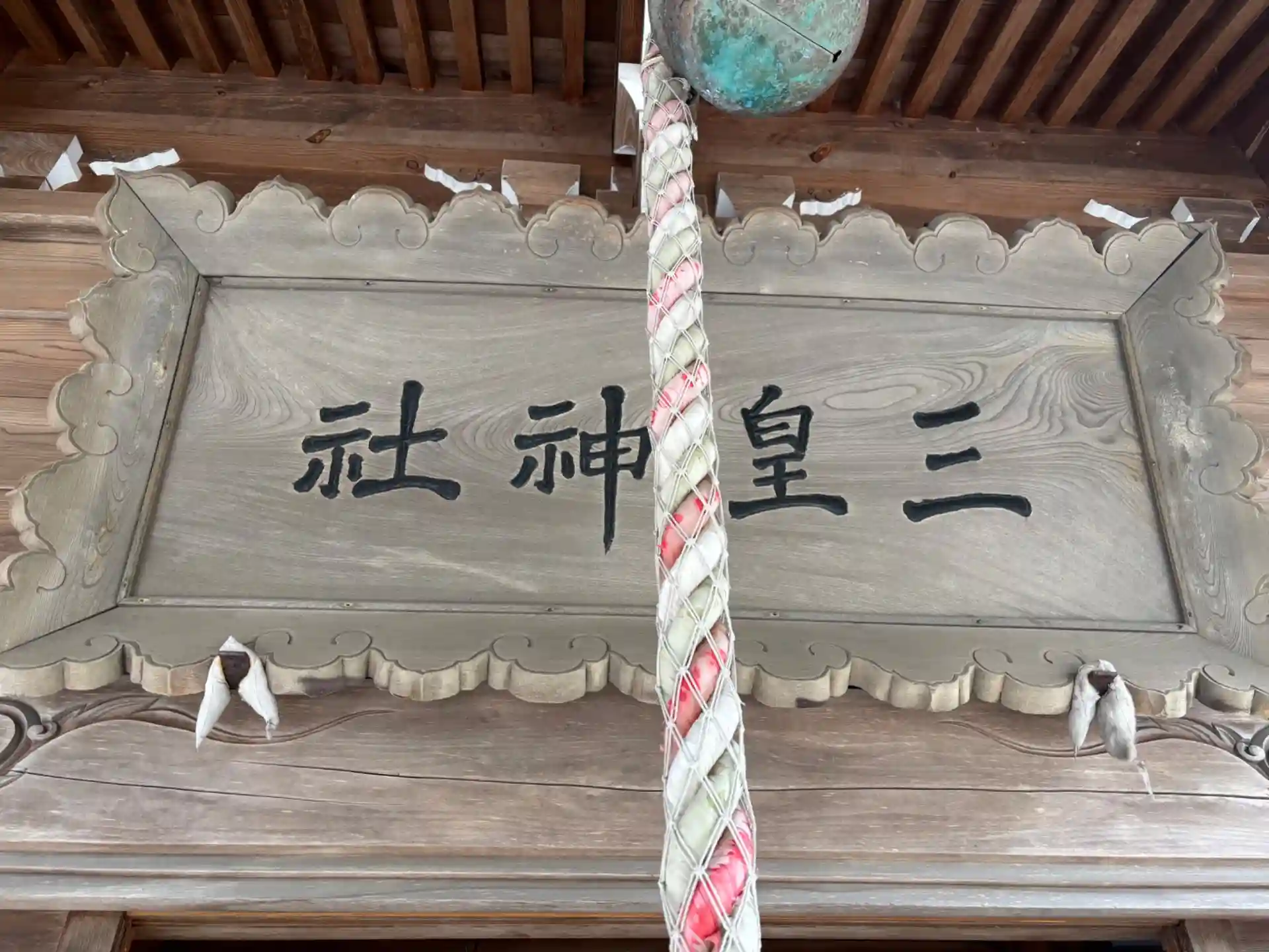 神社名にある三皇とは、太陽・月・星の三つのことだそうで、神紋の三ツ輪で表しており、昔から御神前にかしずいてご祈願を受けると運命が光り輝くと言われてきたそうです。