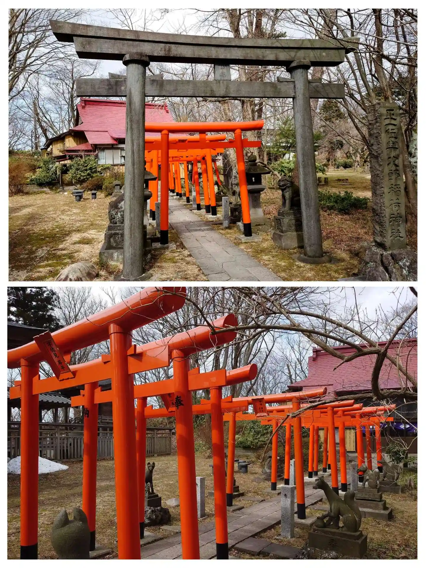 八幡秋田神社のすぐ隣にある稲荷神社です。赤い鳥居が並ぶ様は圧巻です、美しいですよね。でも写真に撮る…