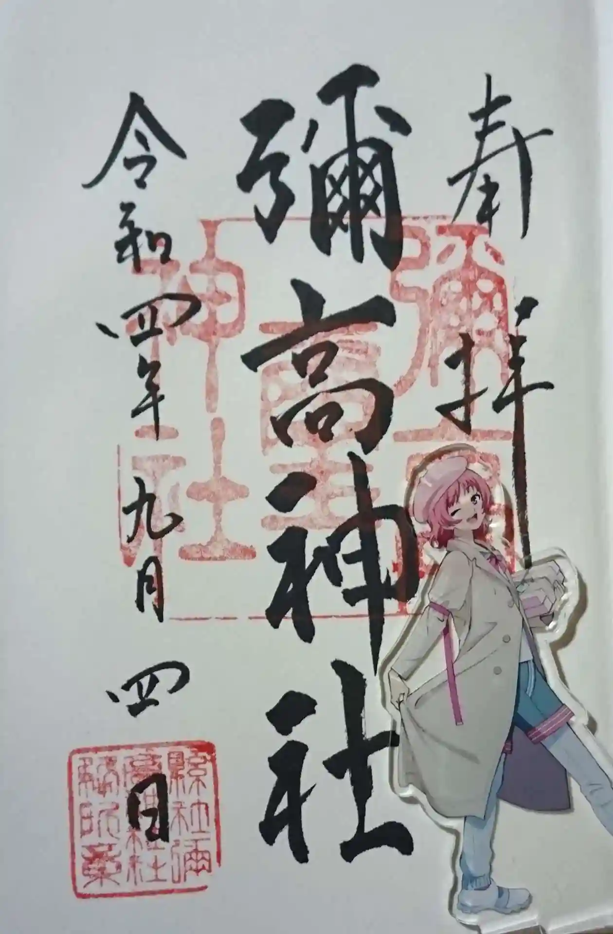 扁額の前で御朱印と。
