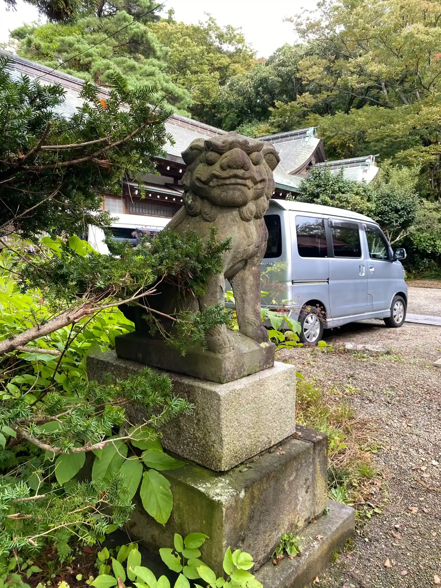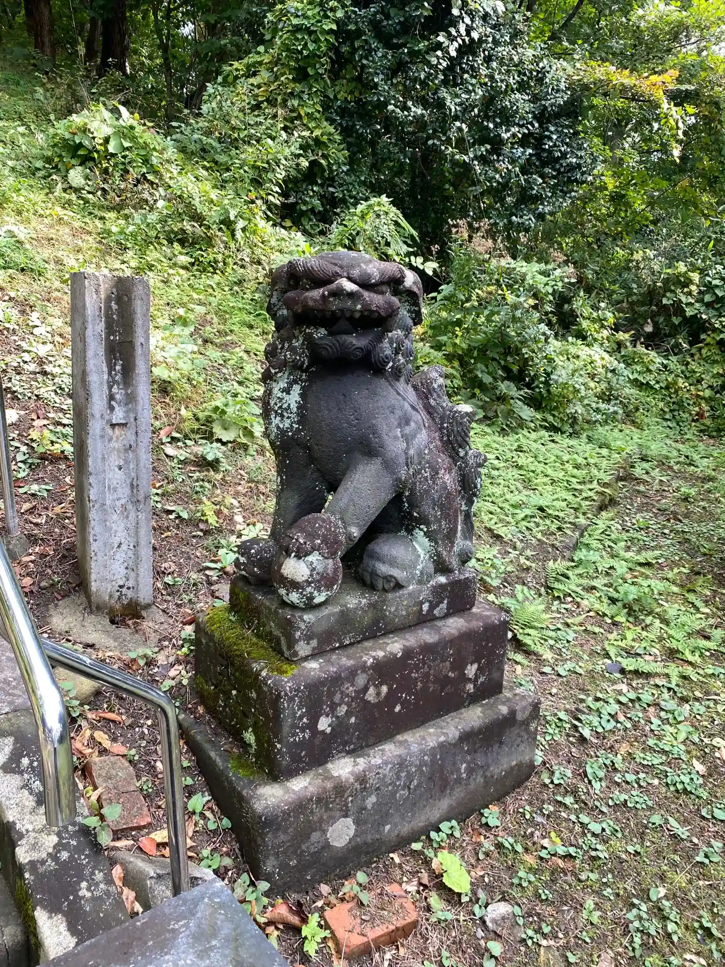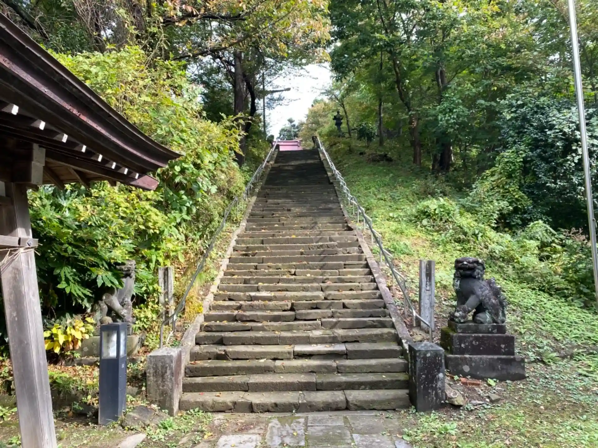 階段の前後に狛犬が鎮座していました