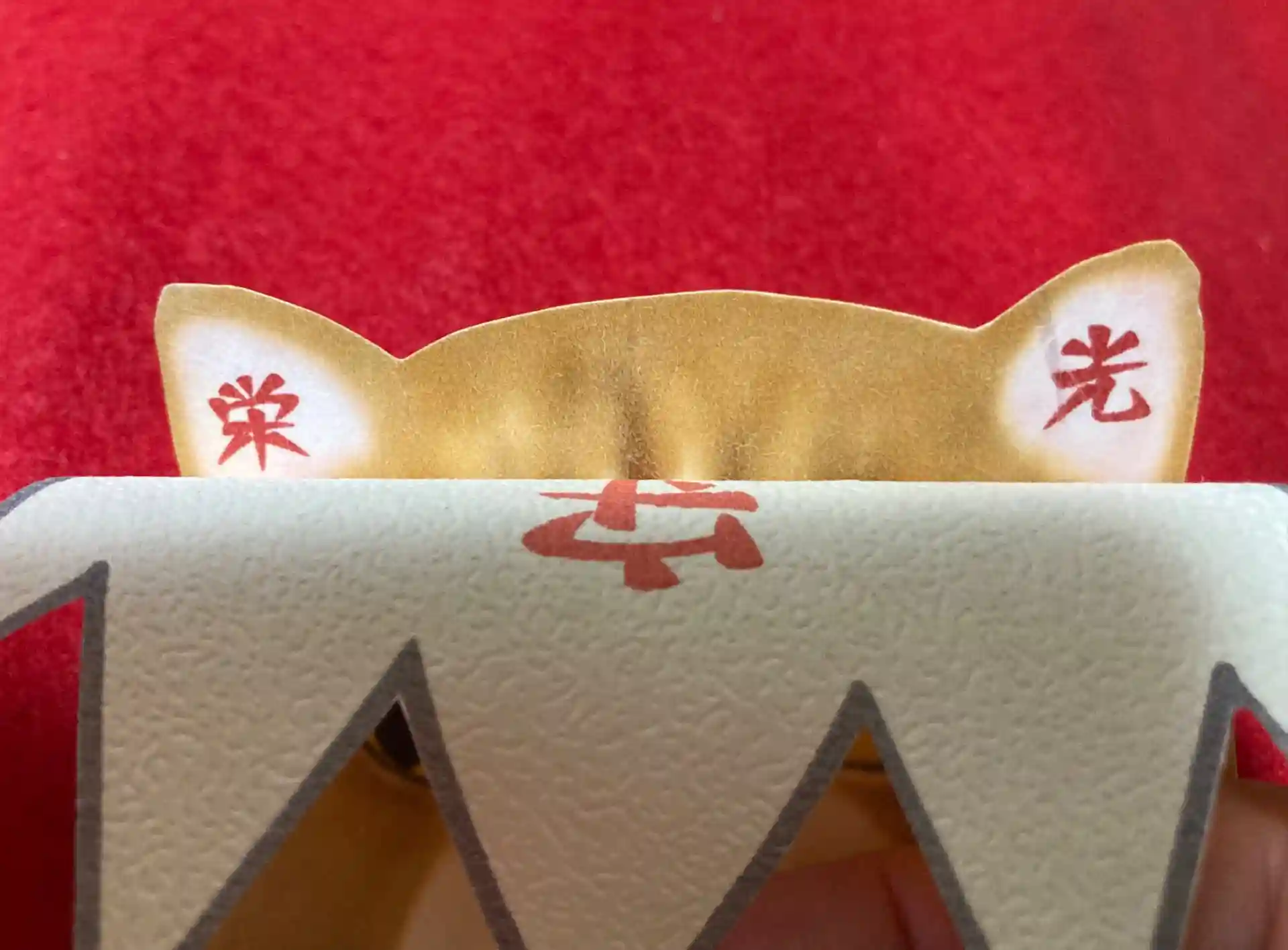 王冠で隠れておりますが、犬の耳には《勝利》、猫の耳には《栄光》の文字が印刷されております。