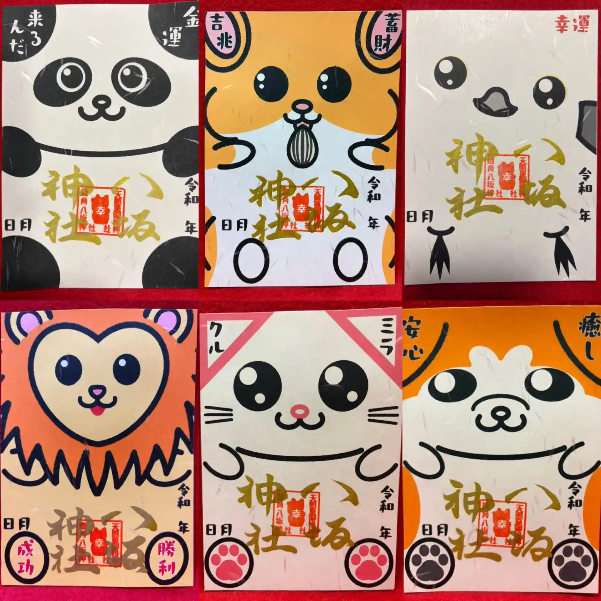 パンダ、ハムスター、シマエナガ、ライオン、猫、犬