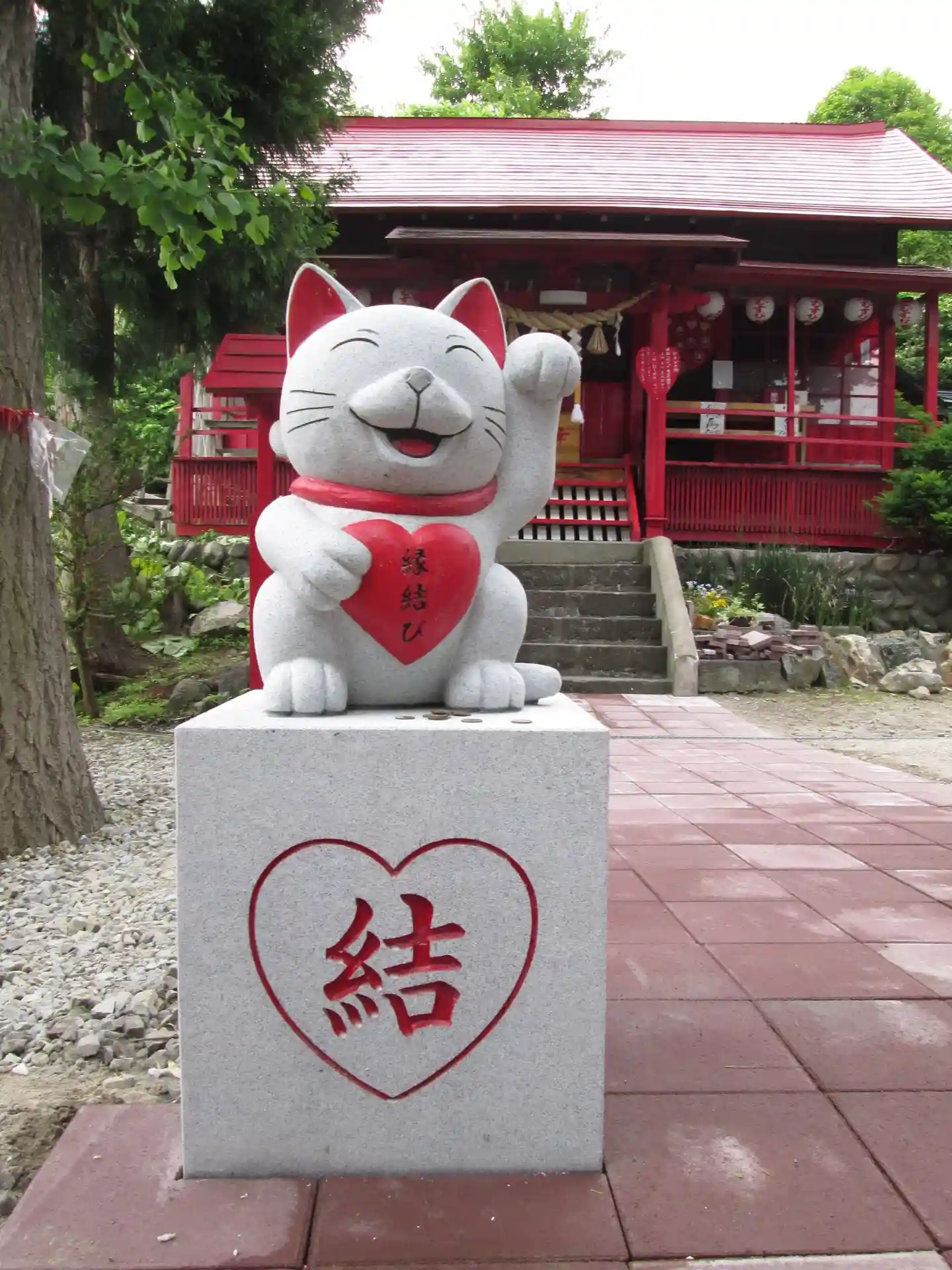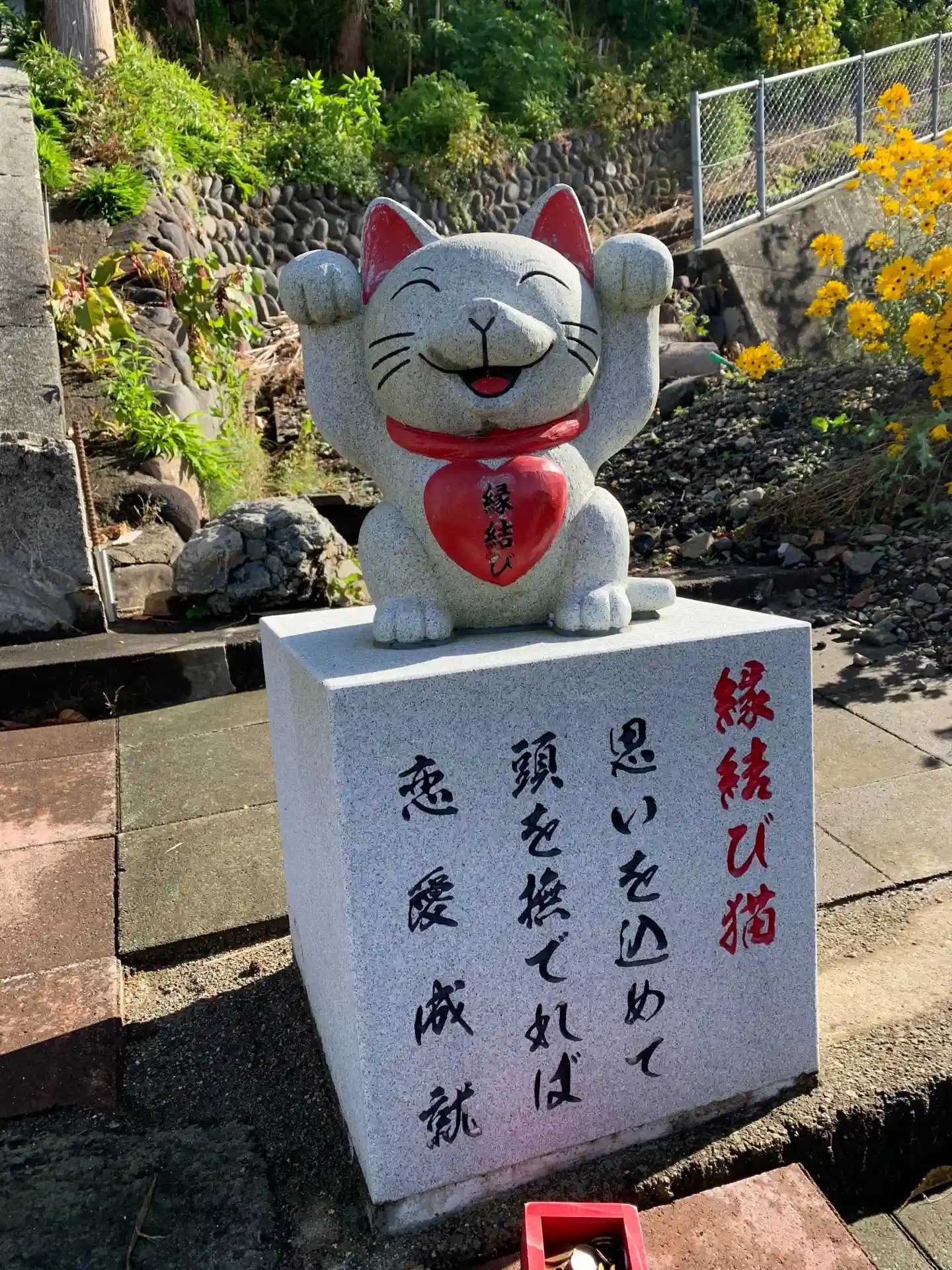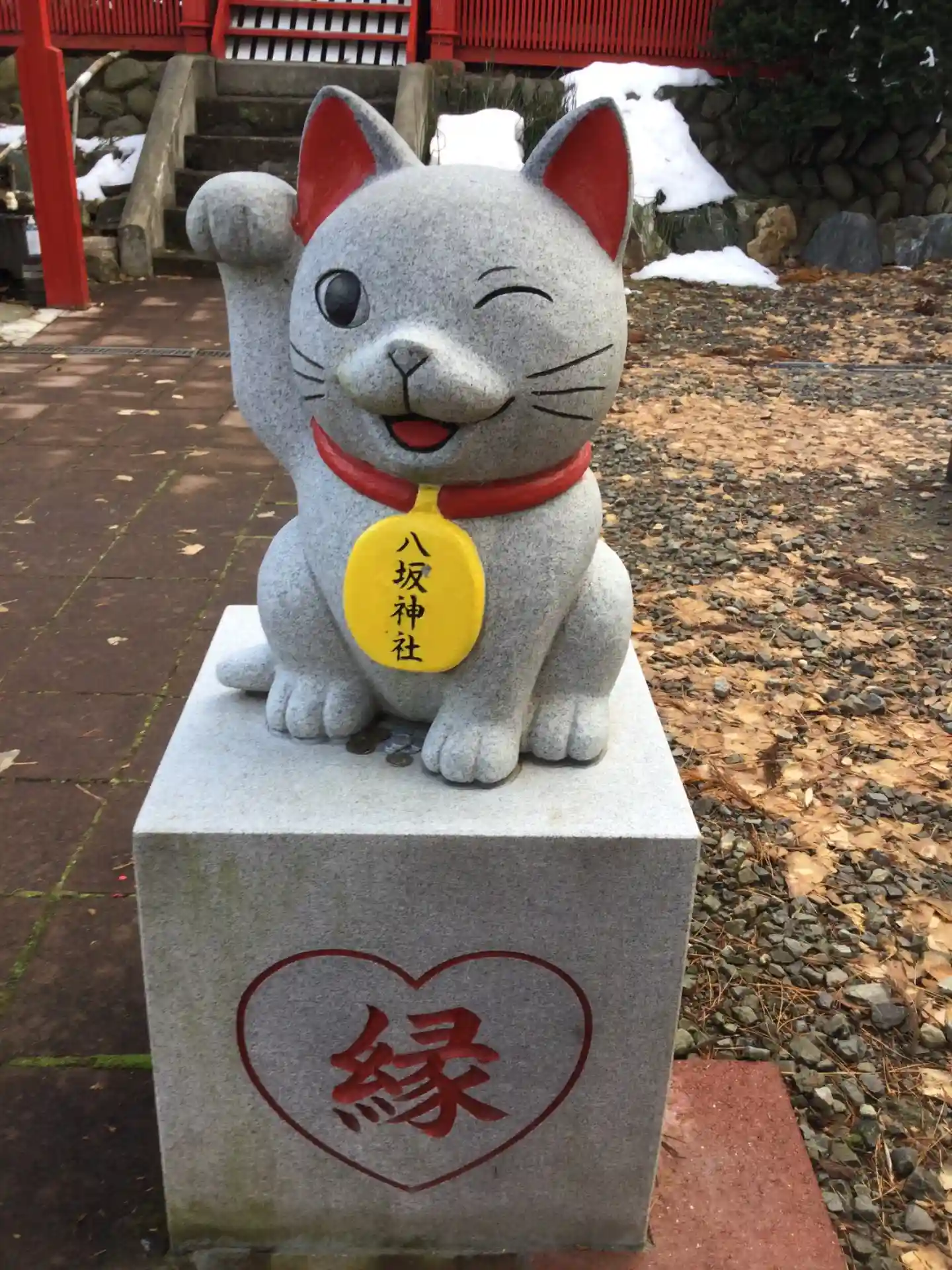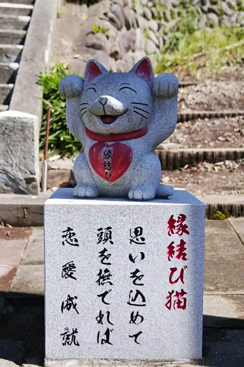当社の鳥居には《全招き猫》と《縁結び猫》がいます。
