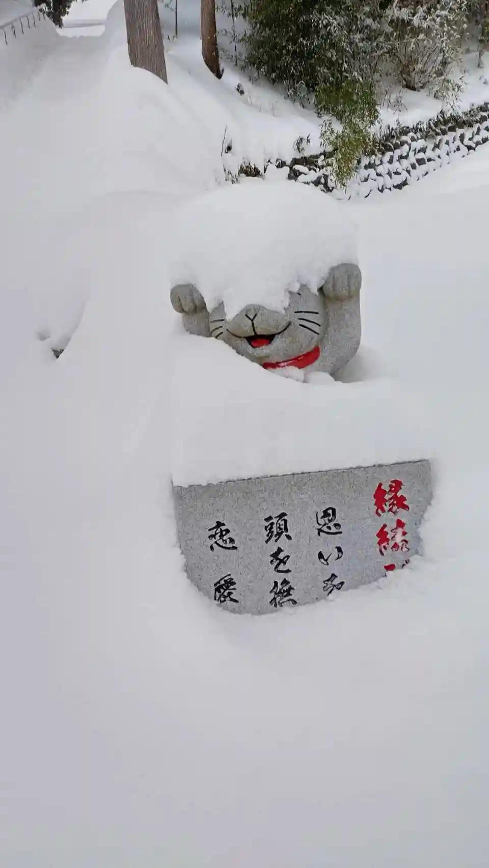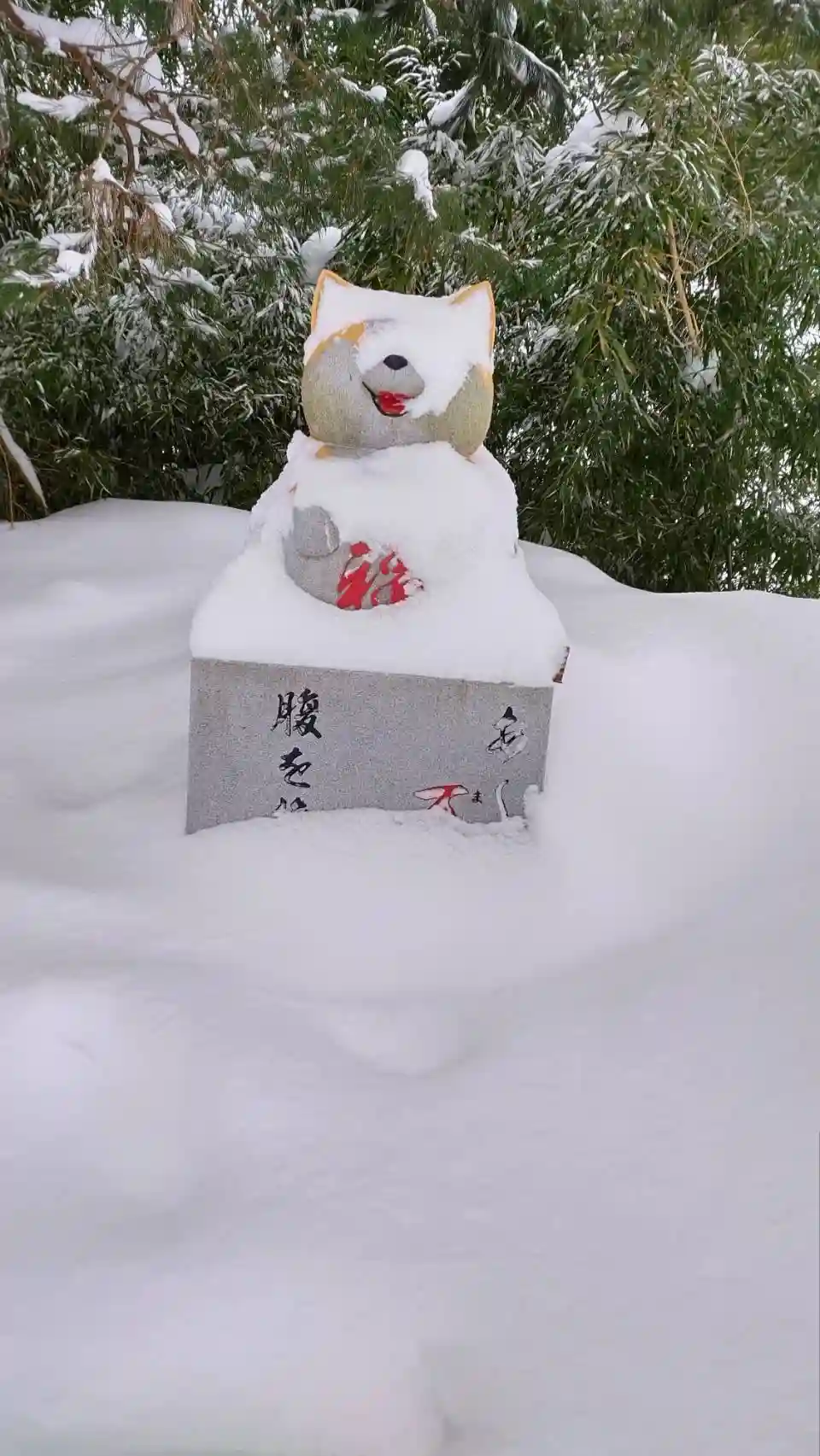 雪を被った狛猫